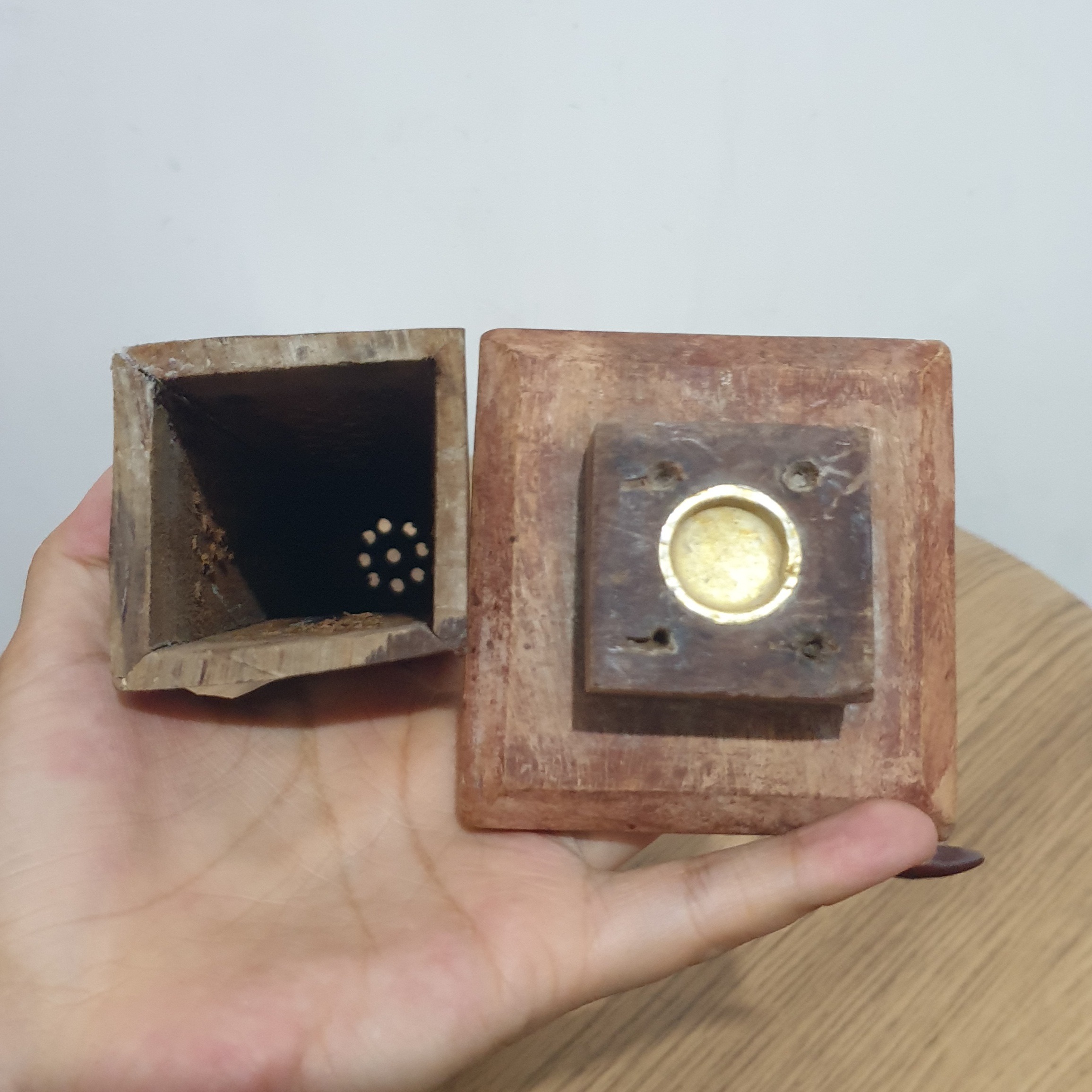 جاعودی چوبی هندی دوره با آرم ماه ستاره ی برنجی