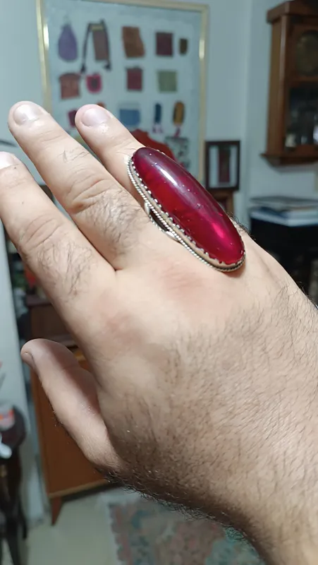 جنس نگین یاقوت شمش میباشد بسیار زیبا و آبدار سنتتیک