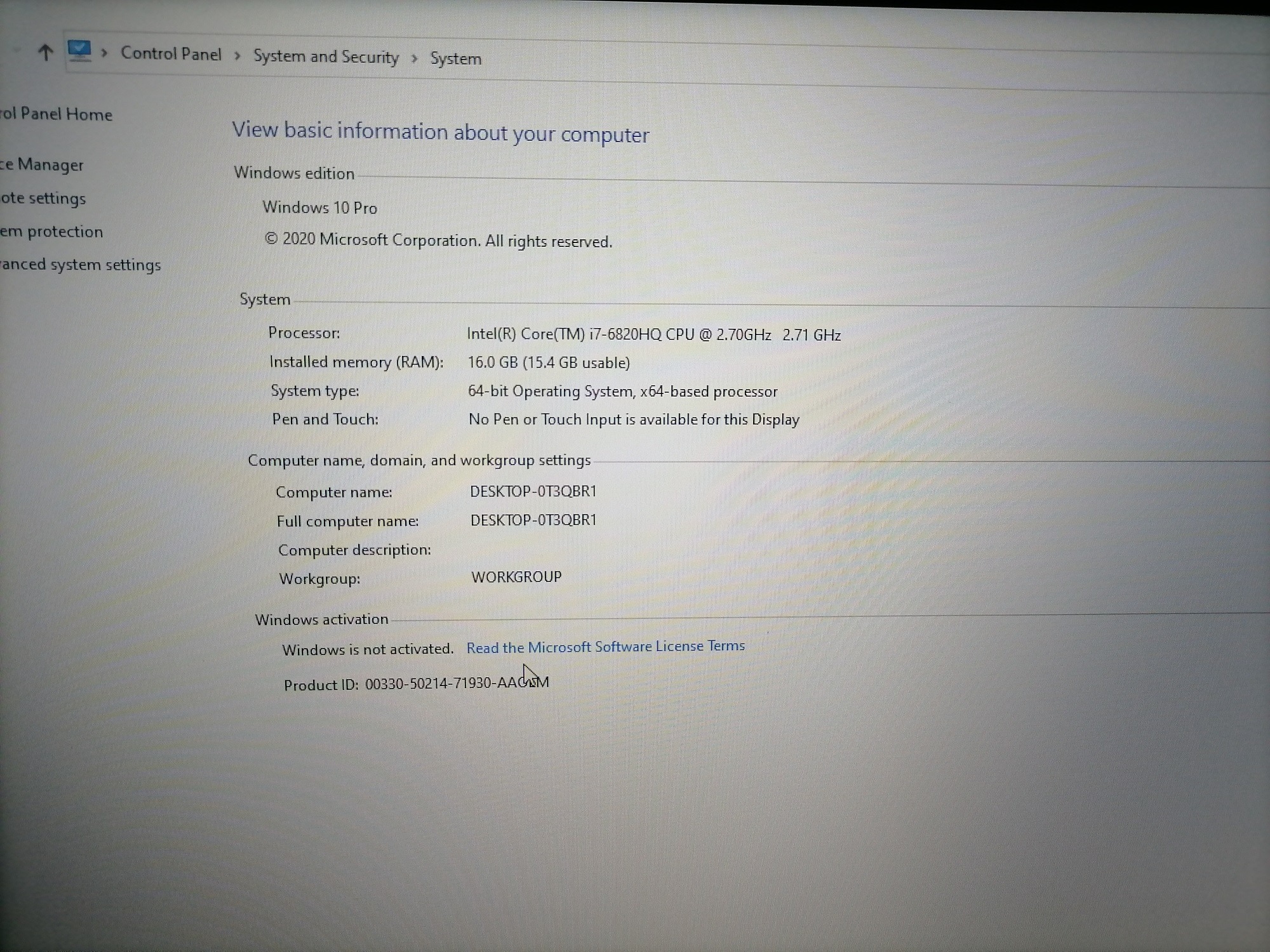 CPU : Core i7 6820HQ 2.7 GHz