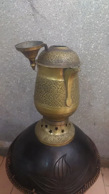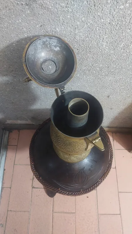 سماور صحرایی زغالی تمام قلم کاری قدیمی کار دست هستش بسیار زیبا و انتیک هستش ارتفاع سماور حدود30 سانتیمتر قطر سماور حدود 38 سانتیمتر هستش کار بسیار تمیز و سالم بدون هیچ گونه ترک و چیزی