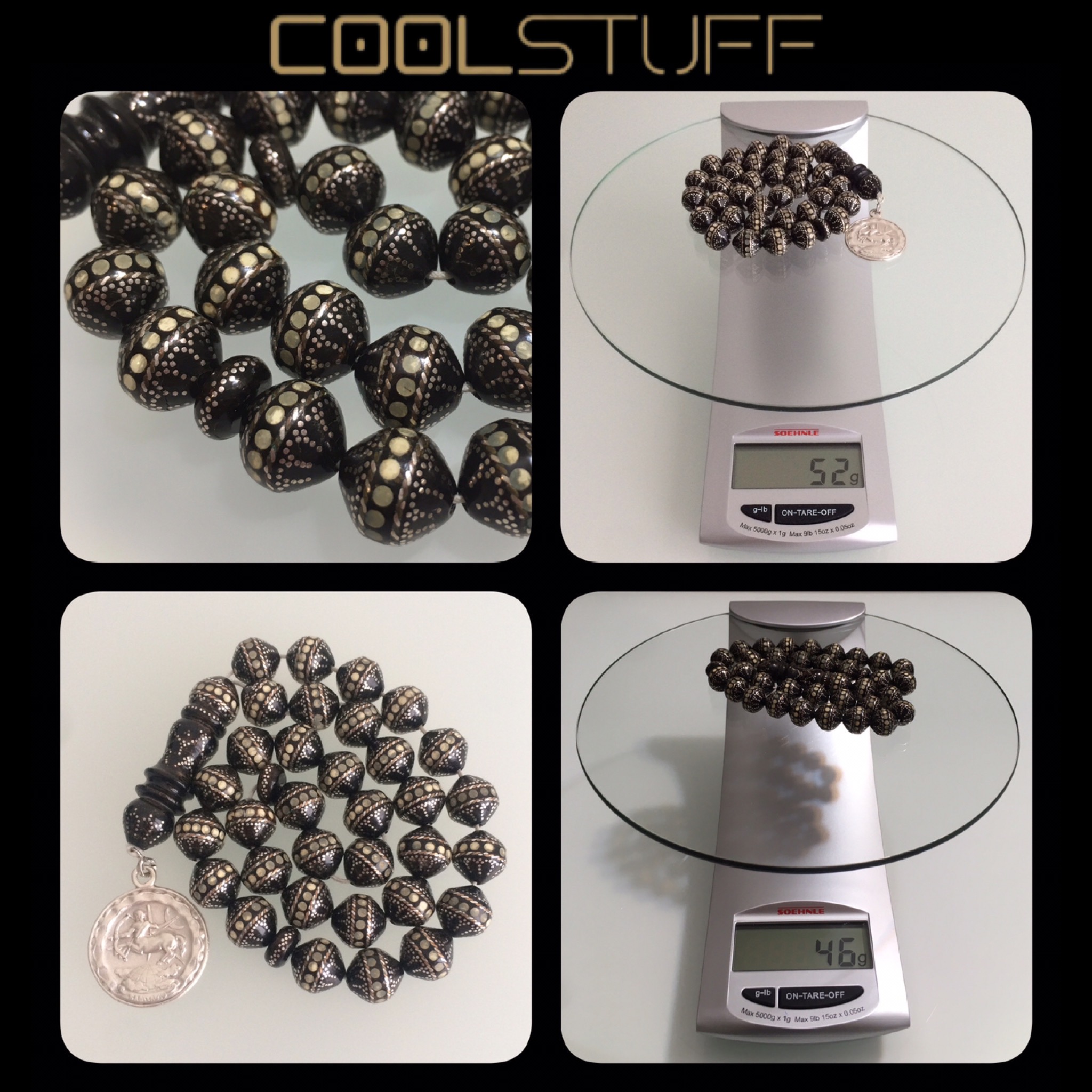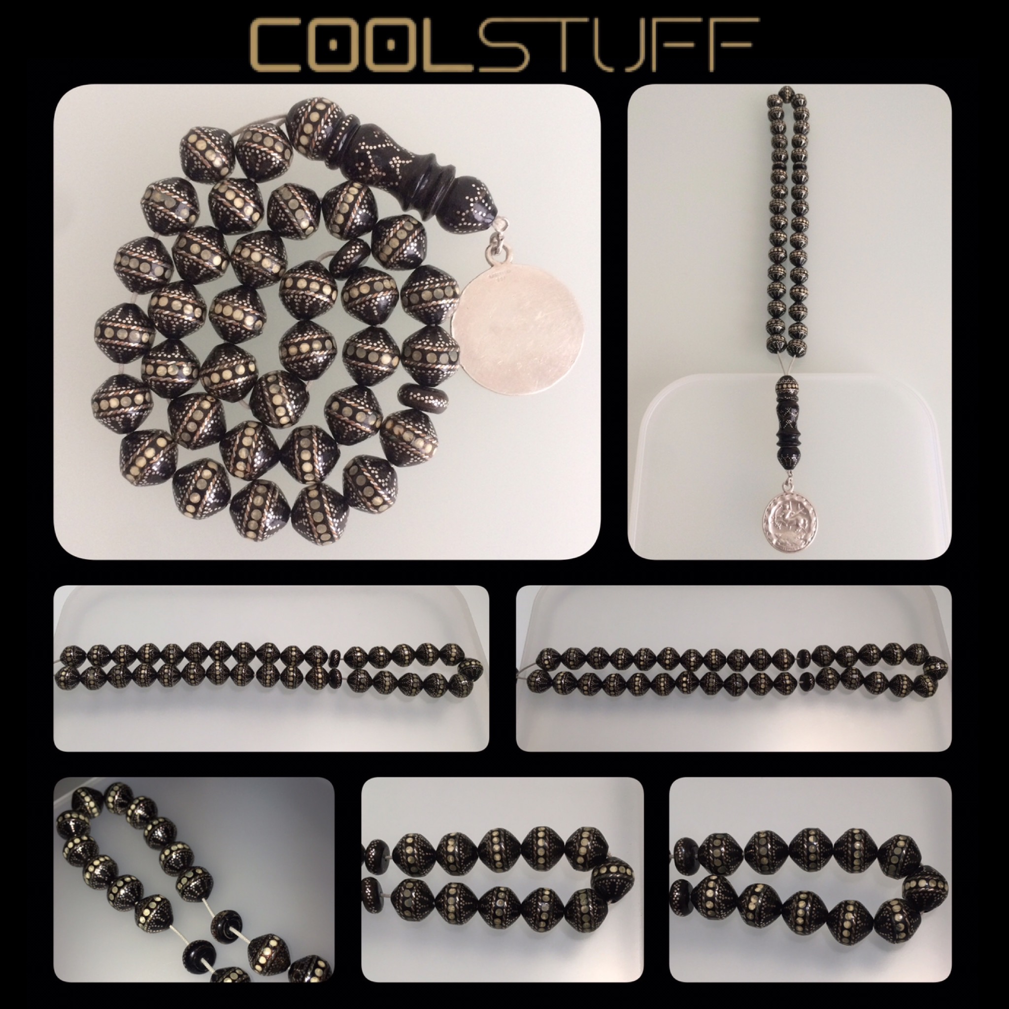 YUSR تسبیح یُسر حجازی 33دانه درشت صدف-نقره کوب