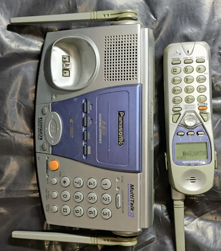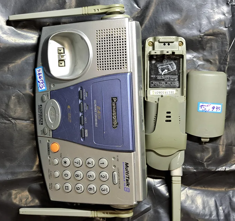 تلفن بیسیم پاناسونیک از نظر ارتباط سالم وطاهر طبق عکس دارای آیفون هم روی گوشی هم روی دستگاه وشماره گیری روی دستگاه دارای مخاطب یاب وارتباط داخلی بین دستگاه وگوشی گوشی خوبی هست وامکانات زیاد باید کسی باشد که کار باتلفن بلد باشدوظاهر هم طبق عکس دارای آدابتور وبدون باتری لطفا در خرید کاملا عکسها را ملاحظه کنید