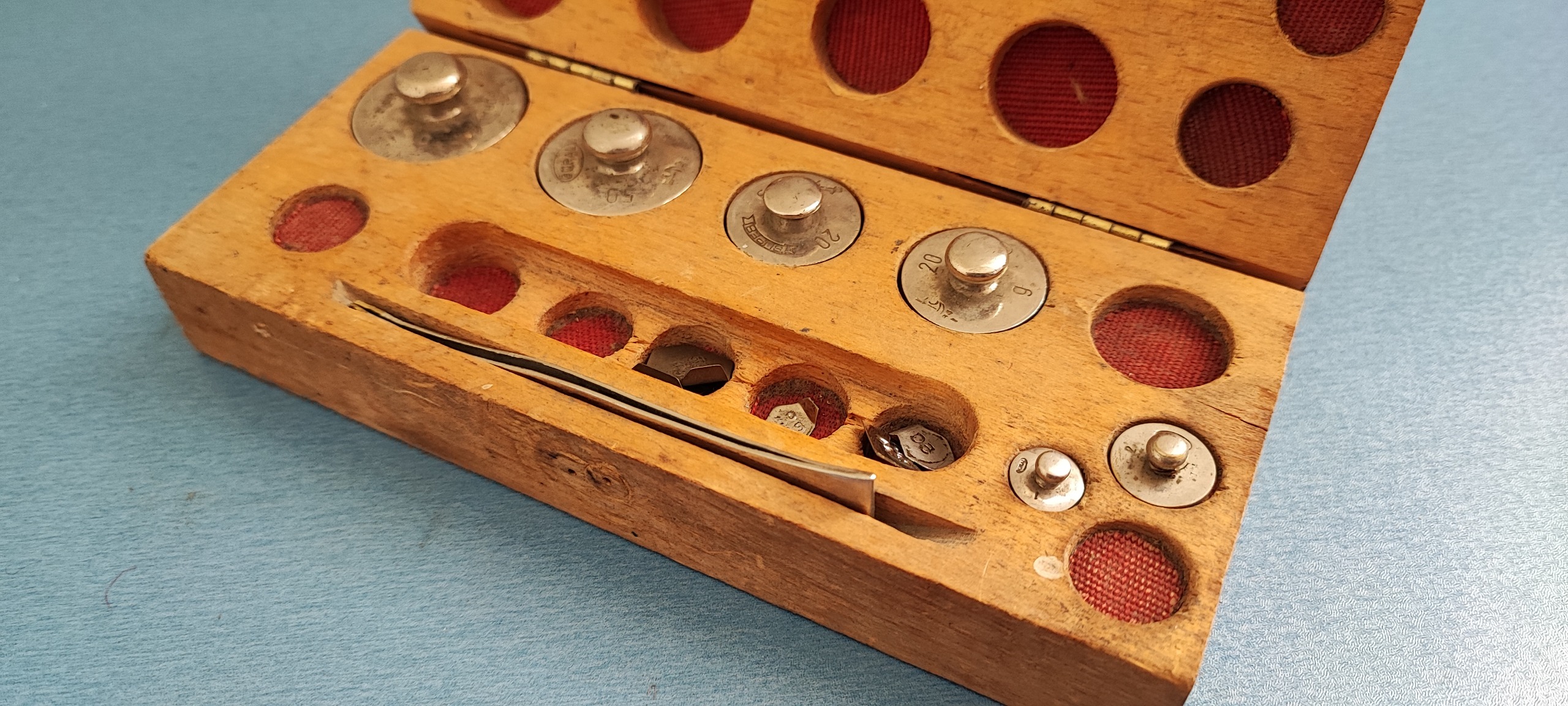 سالم و بهمراه جعبه چوبی فابریک و پنس و چند تا وزنه صوتی کوچکتر، نفیس و کمیاب و کلکسیونی