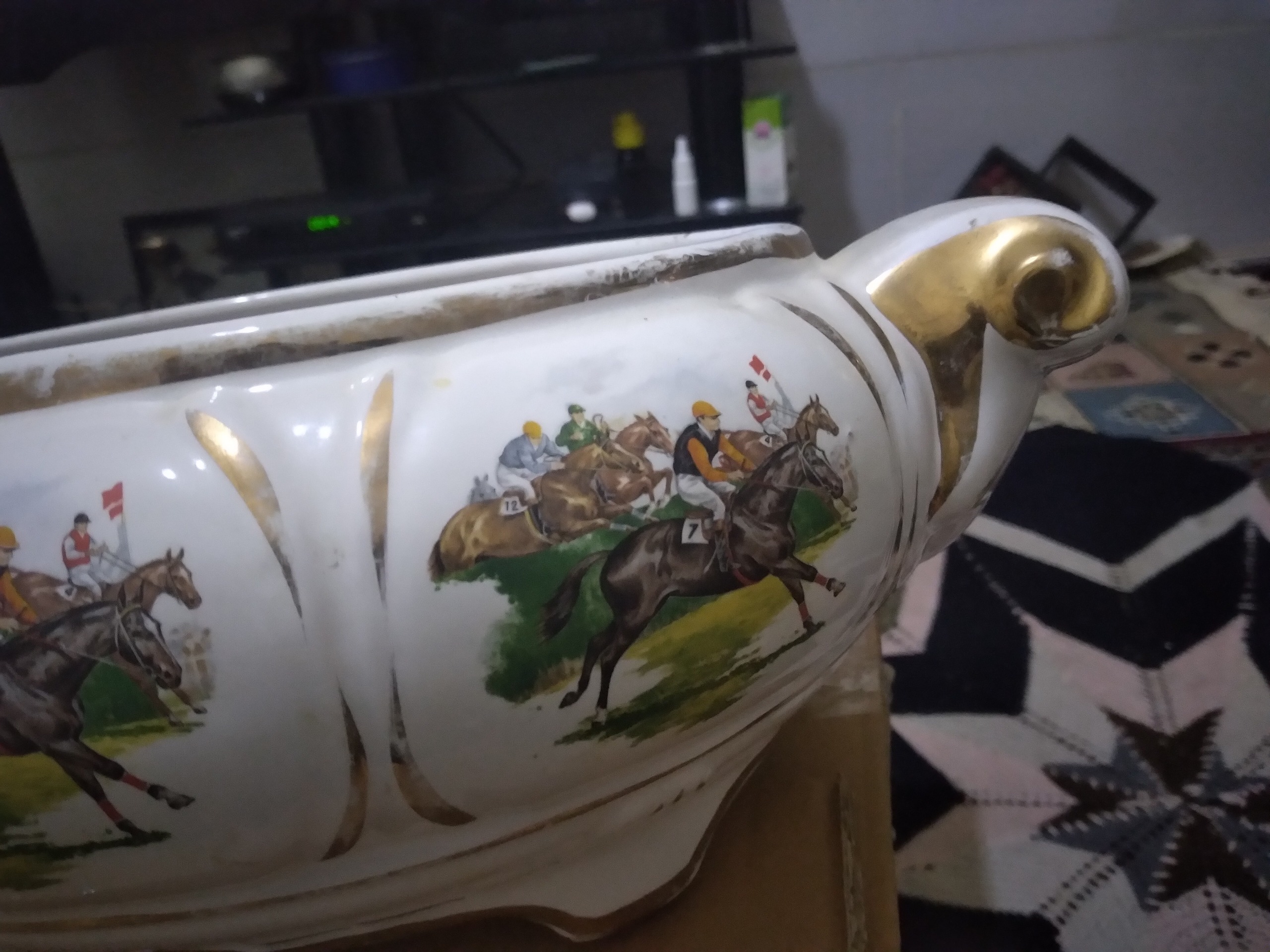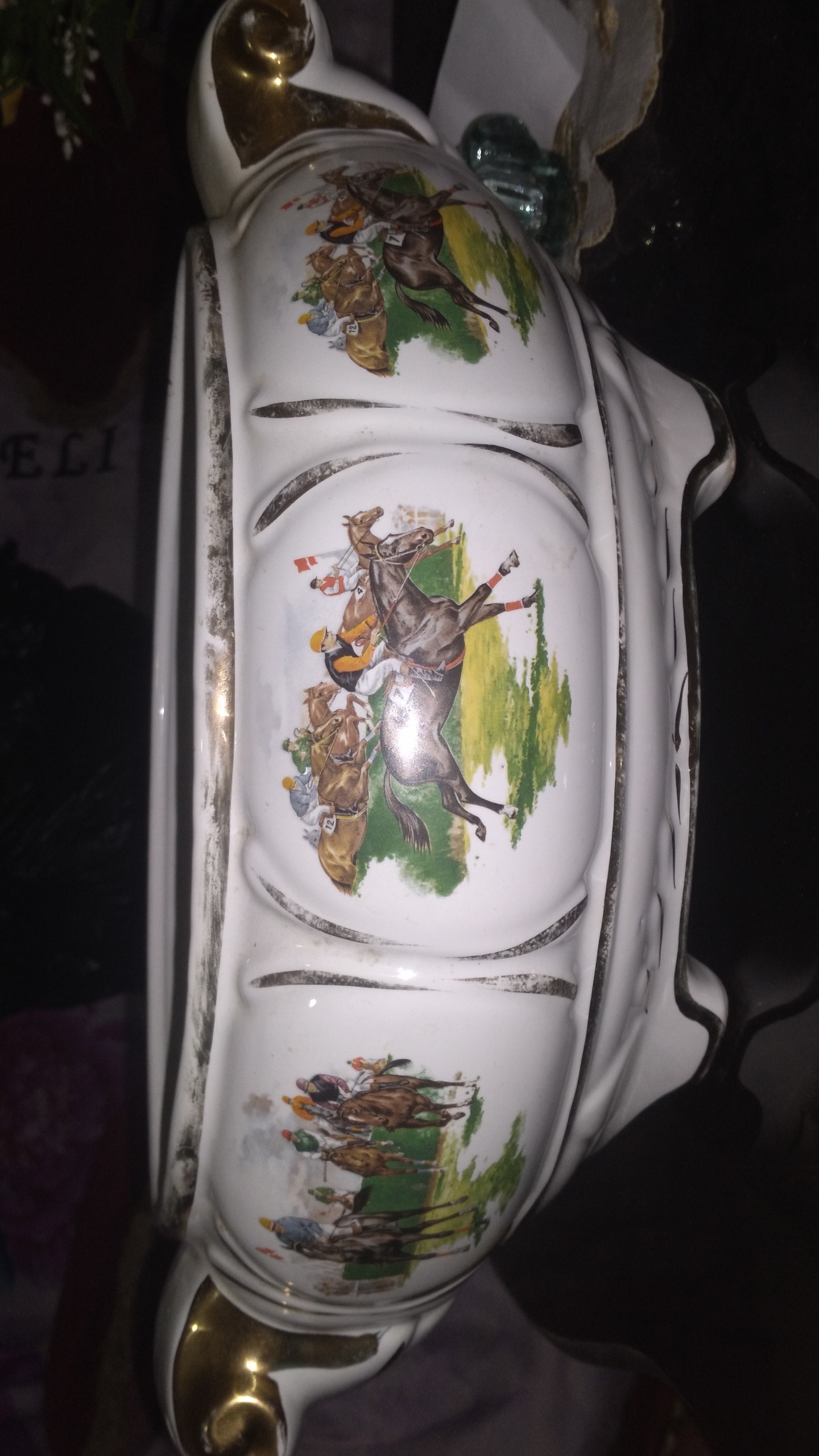 ظرف چینی اصل انگلیس. با نقاشی زیبای اسب سواری یا چوگان و نوار رو کش طلا .
