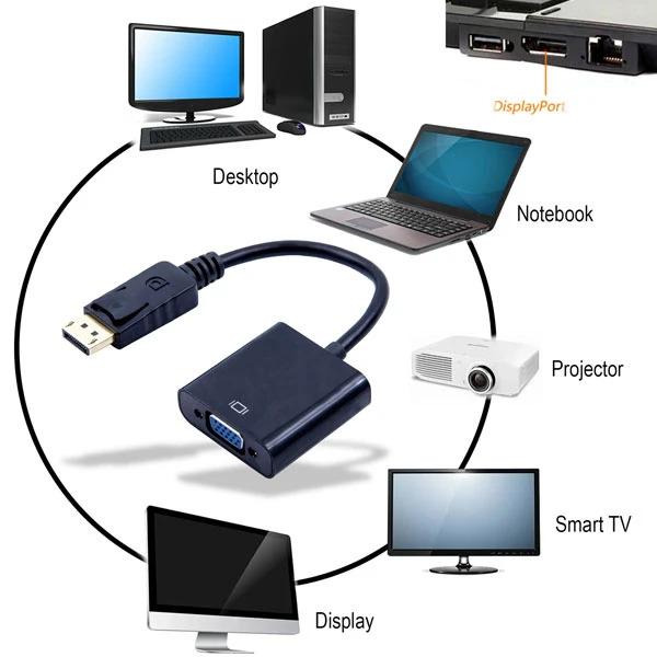 - این مبدل برای اتصال کلیه دستگاه های دارای خروجی DISPLAY PORT و تاندربولت Tunderbolt همانند لپ تاپ ها، مک بوک و آی مک به مانیتور یا تلویزیون یا ویدیو پروژکتور که پورت VGA داشته باشند استفاده می شود. همچنین میتوان سیستم را به یک مانیتور آنالوگ استاندارد ، پروژکتور ، LCD و با ساپورت یک کانکتور VGA یا کابل به راحتی وصل نمود