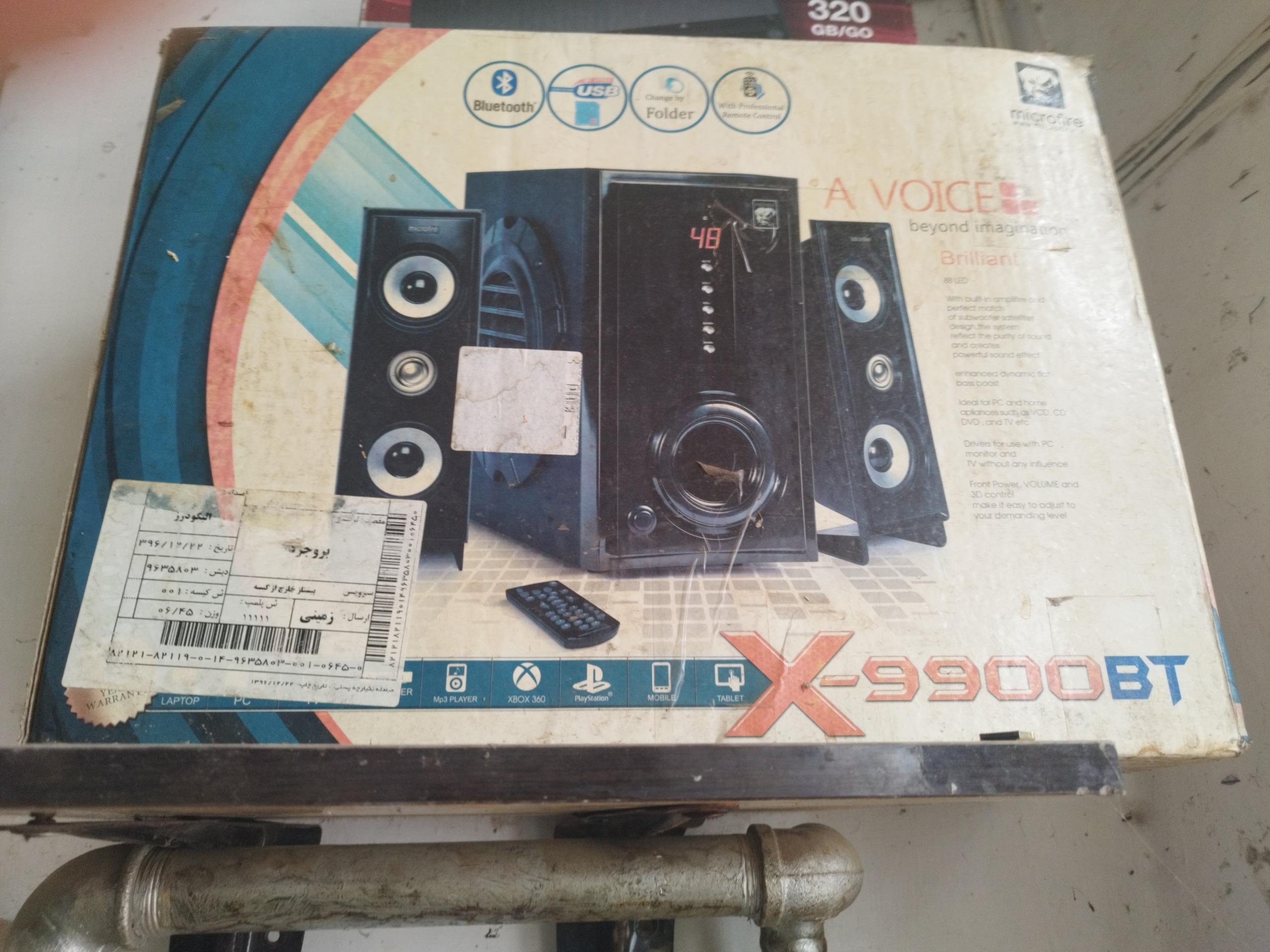 اسپیکر دست دو ولی سالم خاکی هست تو مغازه بود اسپیکر باندش بزرگ از گوشه پاره گی دارد چسب زده شده ((عکس ها واضح بلوتوز همه چی سالم