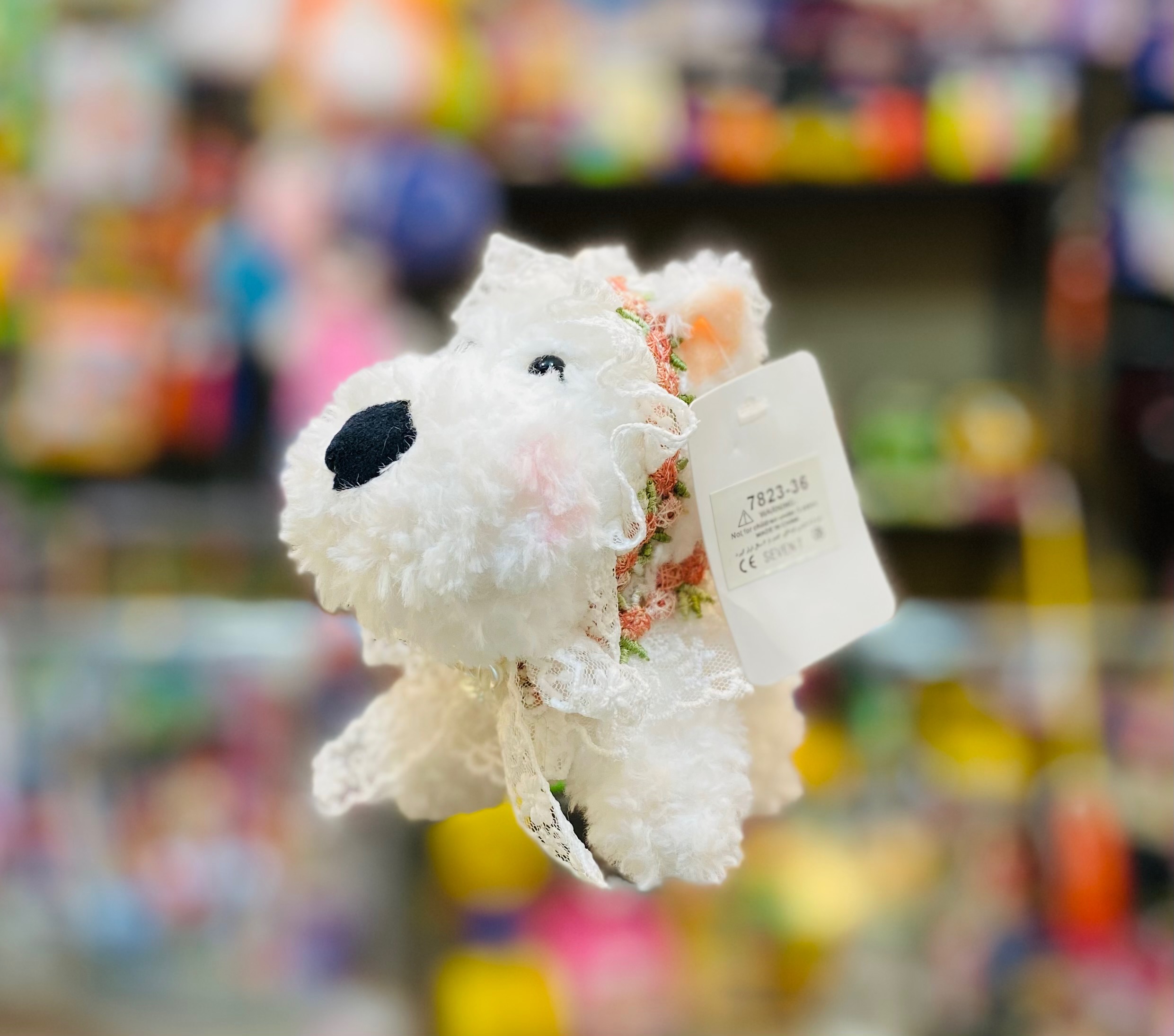 عروسک سگ پشمالوی سفید عروسکهای جاکلیدی یا آویز کیف