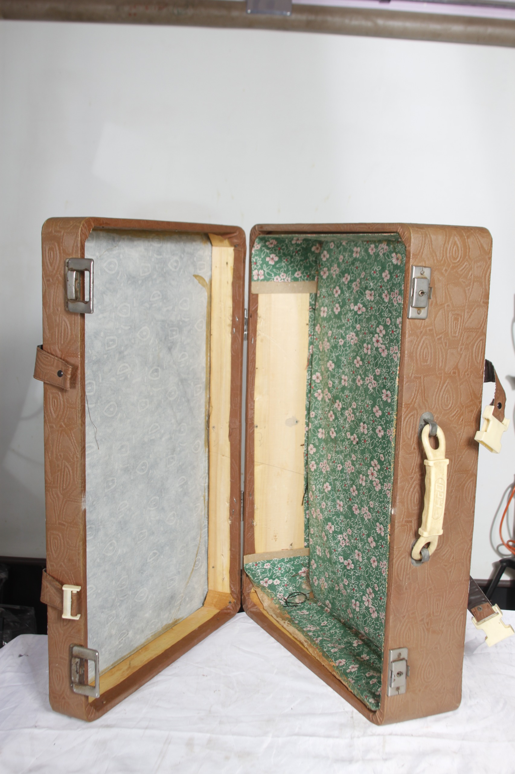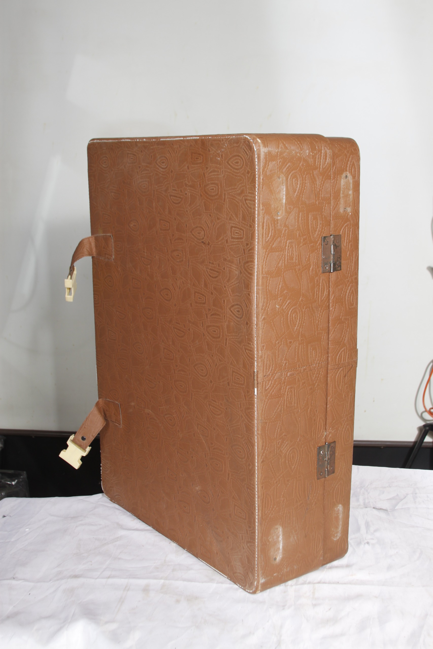 این چمدان سایز متوسط هست حدود 40 در 60 هست و رنگش زیبا و نوع جنس بدنه ی چمدان نقش داره