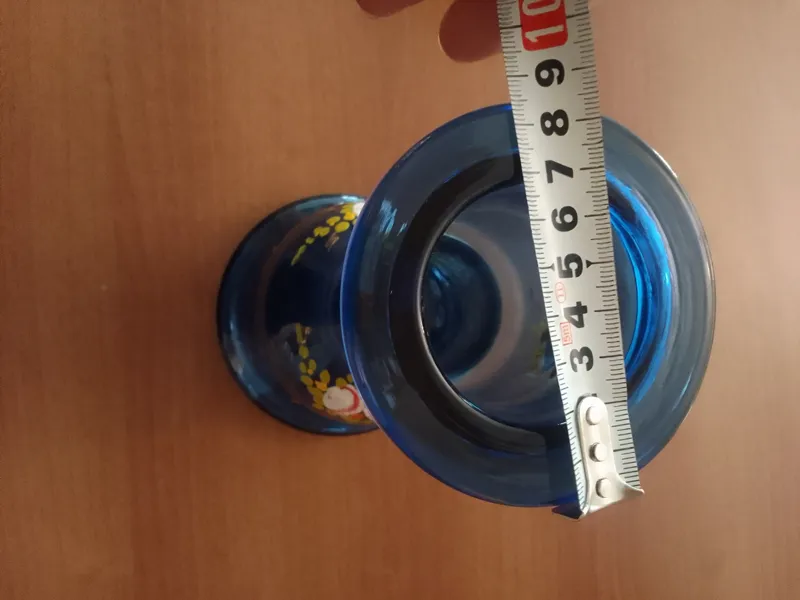 تنگ شیشه کوزه قلیان آبی طلایی گل گلدان آنتیک قدیمی