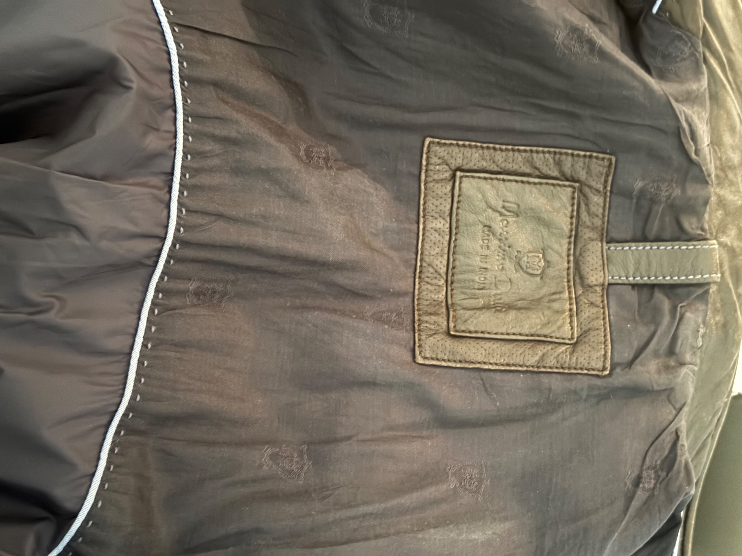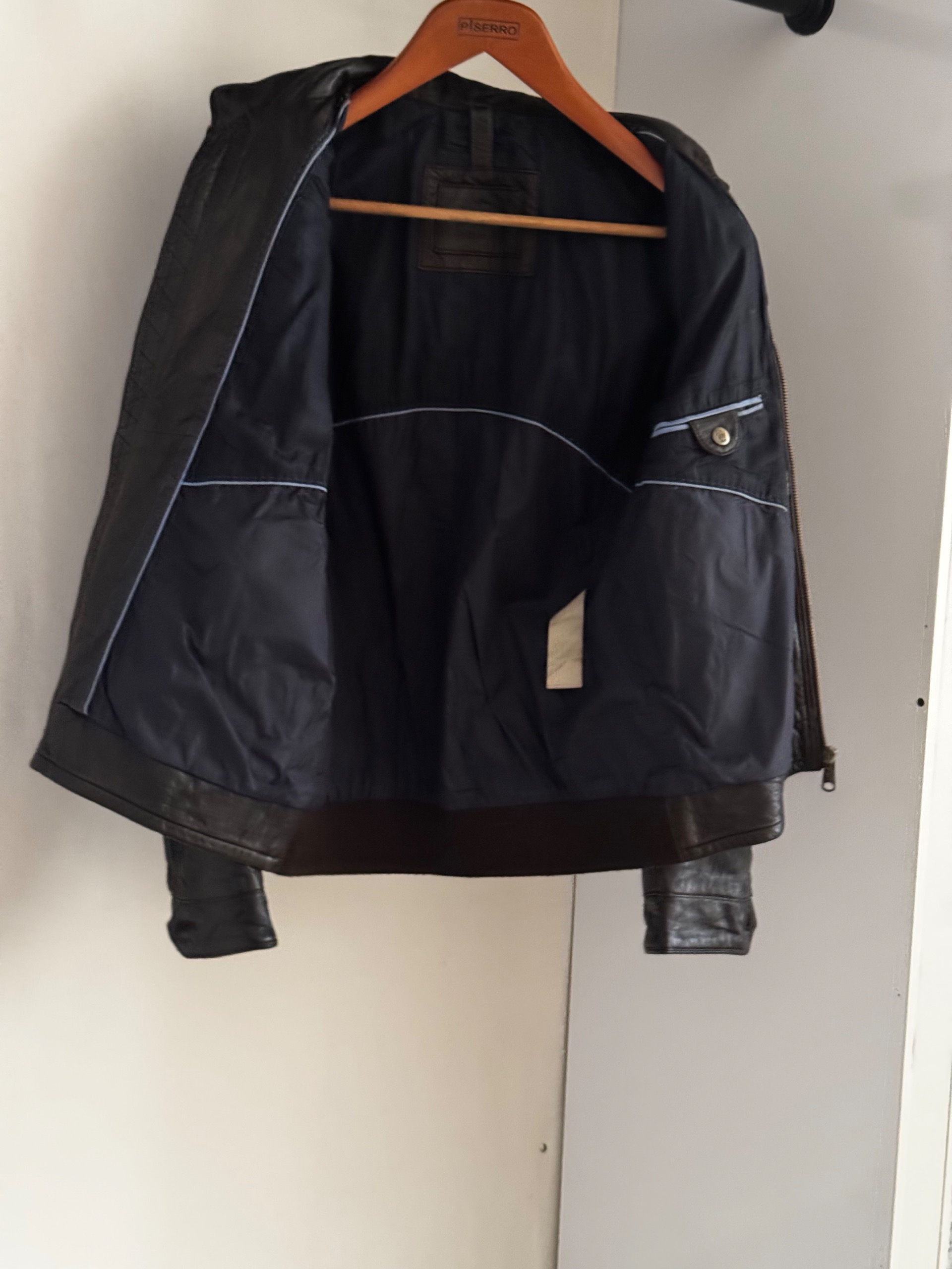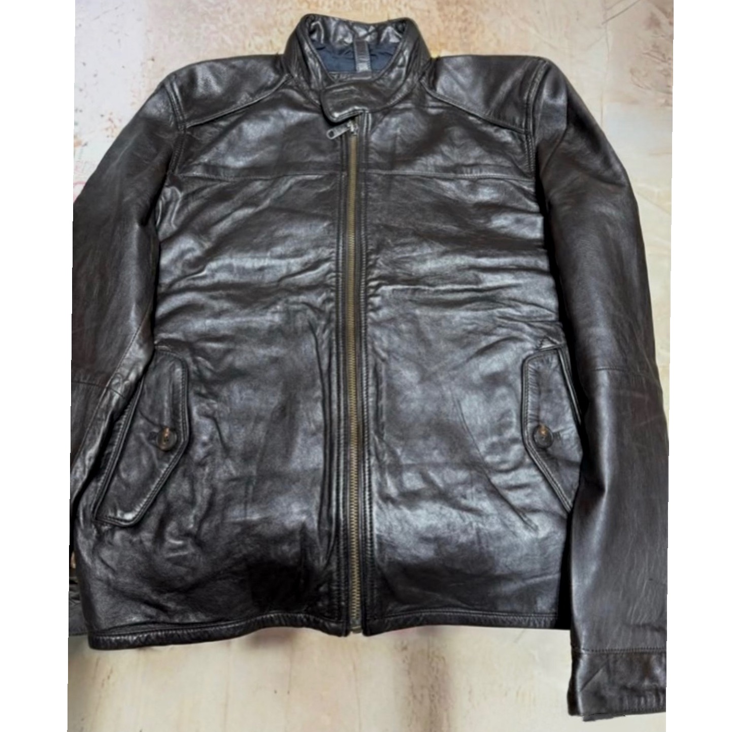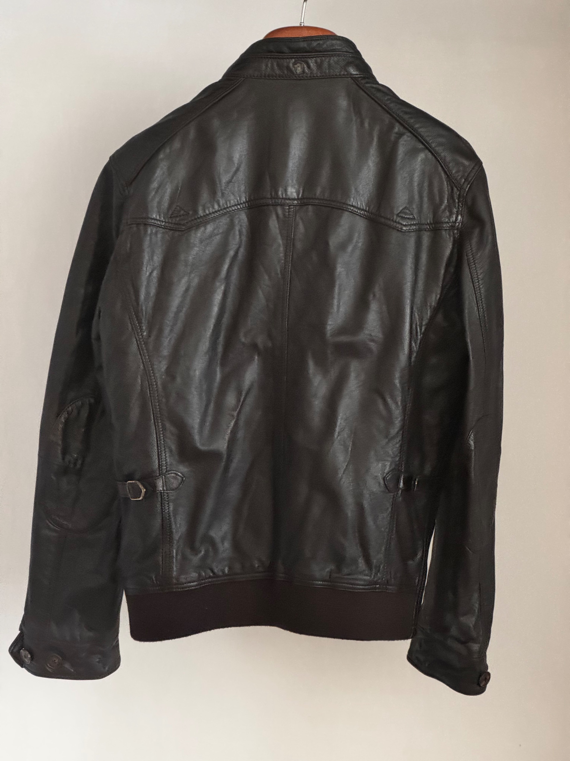 کت چرم لاکچری قهوه ای سوخته ، برند massimo dutti اسپانیا .