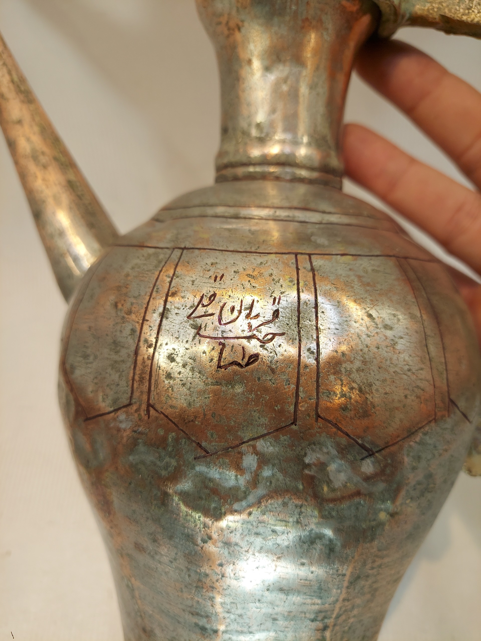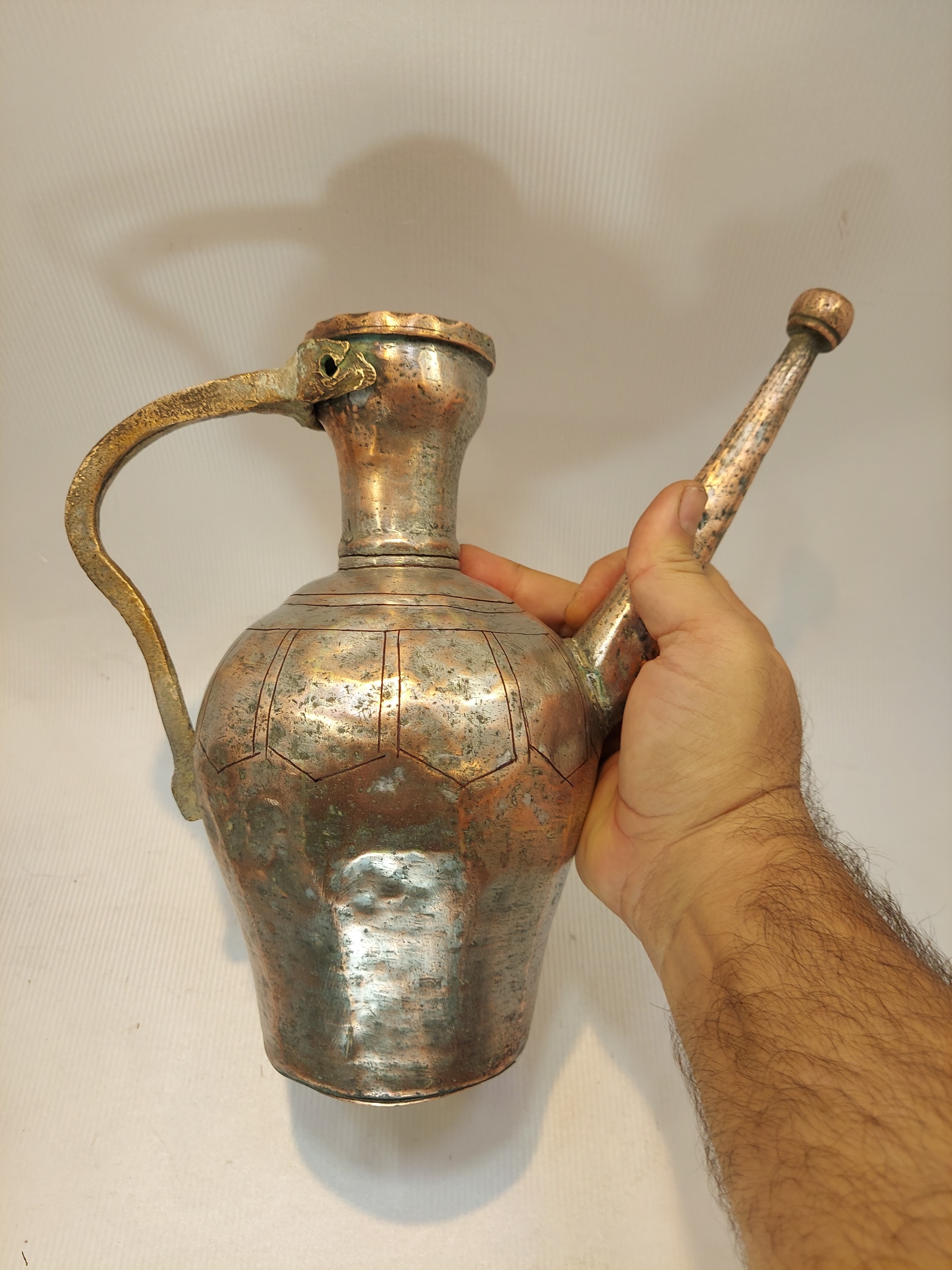 آفتابه مسی 200 ساله تراشدار صاحبه دار