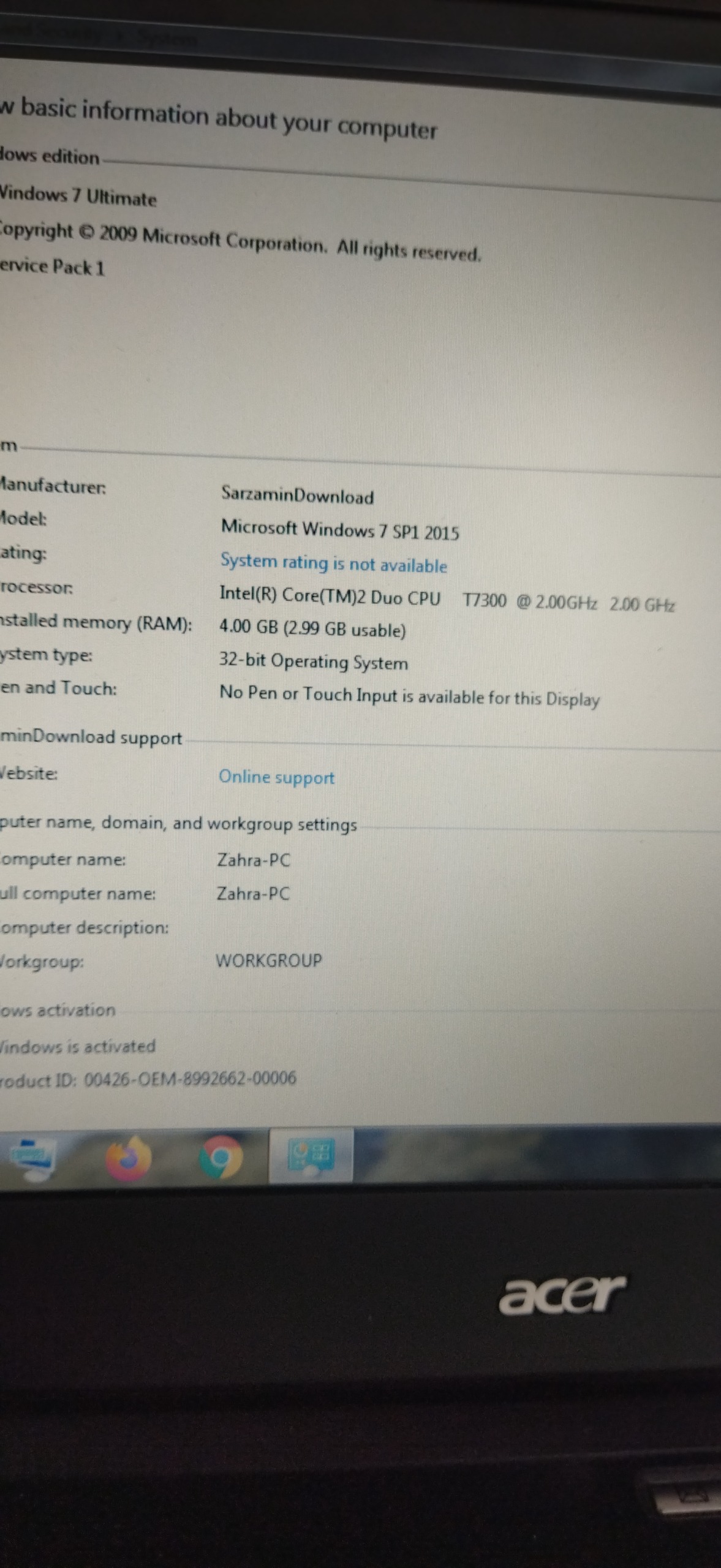 لپ تاپ ایسربا هاردssd و رم4