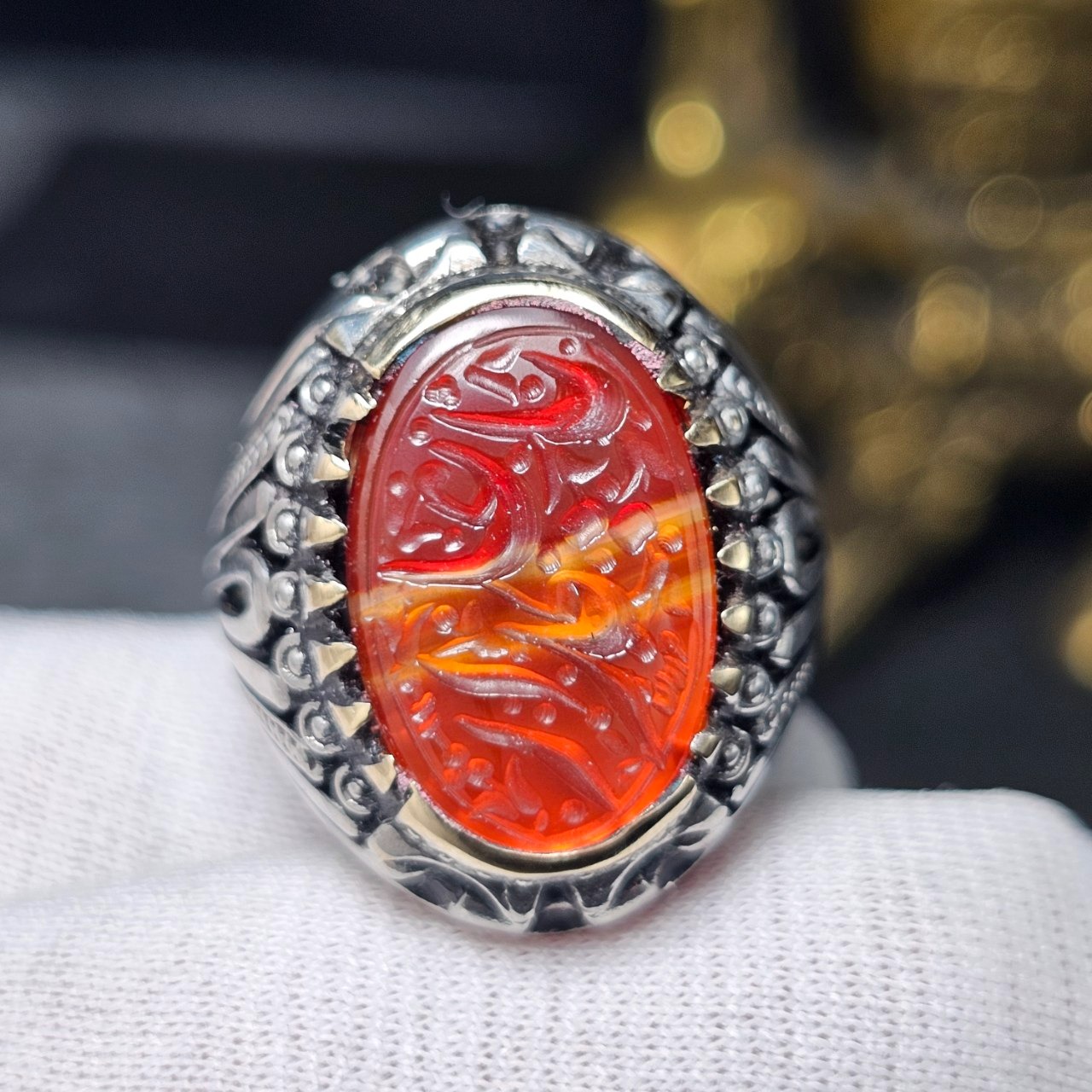انگشتر نقره روس باسنگ عقیق معدنی خط دست 36120