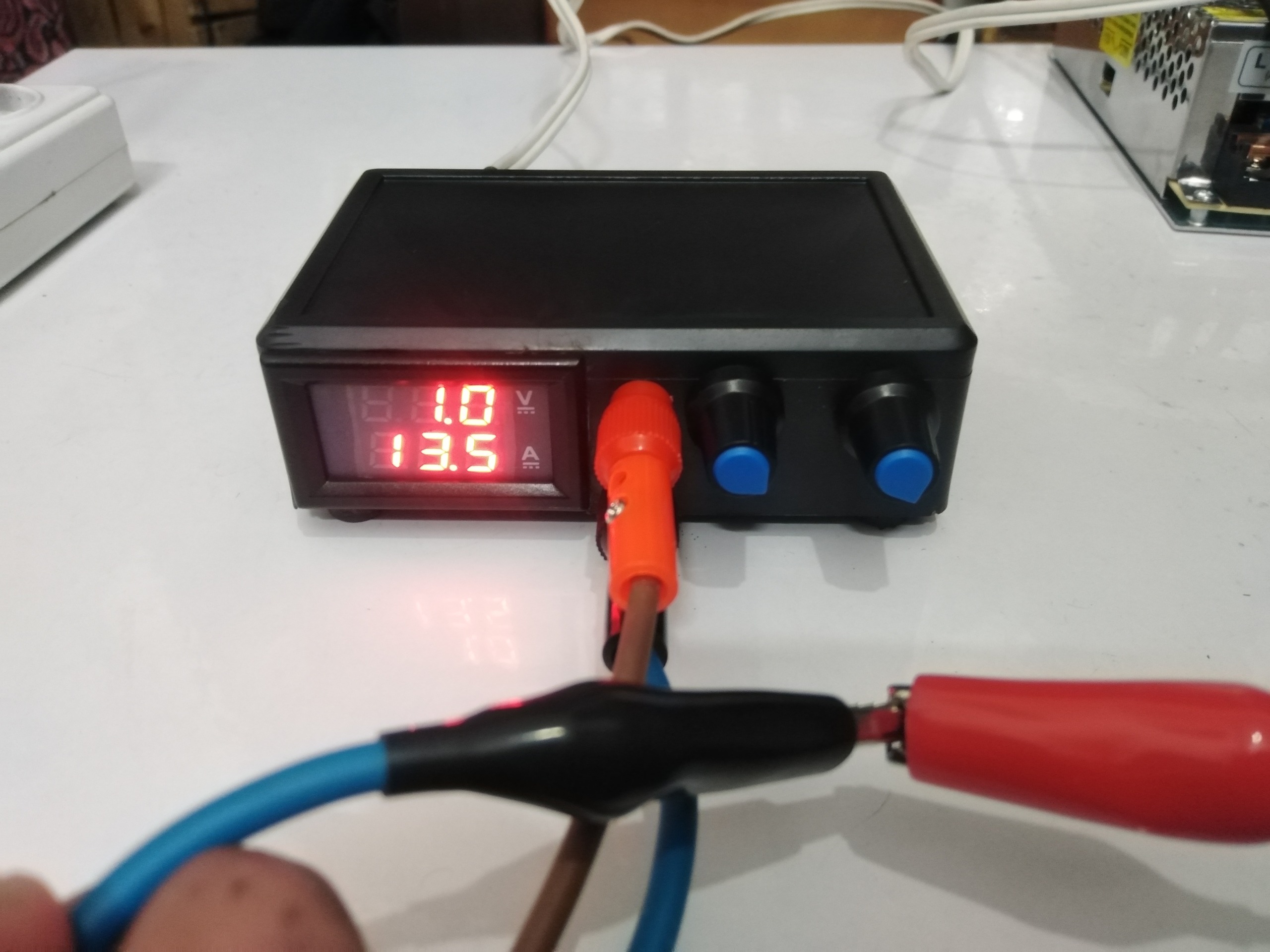 این دستگاه قابلیت تنظیم جریان از 0.15 آمپر تا 10 آمپر قابل تنظیمه با چرخاندن ولوم دوم سمت چپ خیلی ساده دستگاه جریانش کنترل میشه...