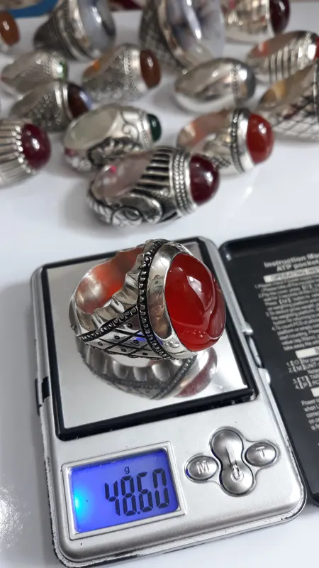 انگشتر نقره دست ساز عقیق پرتغالی معدنی