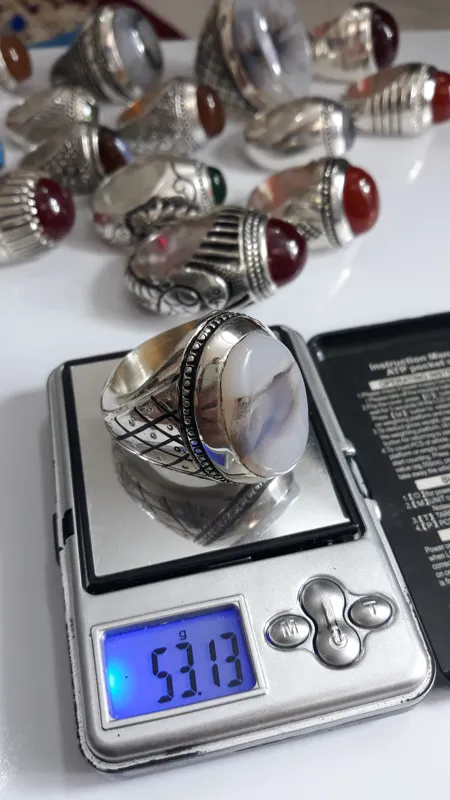 انگشتر نقره دست ساز شجر معدنی مصور پرنده