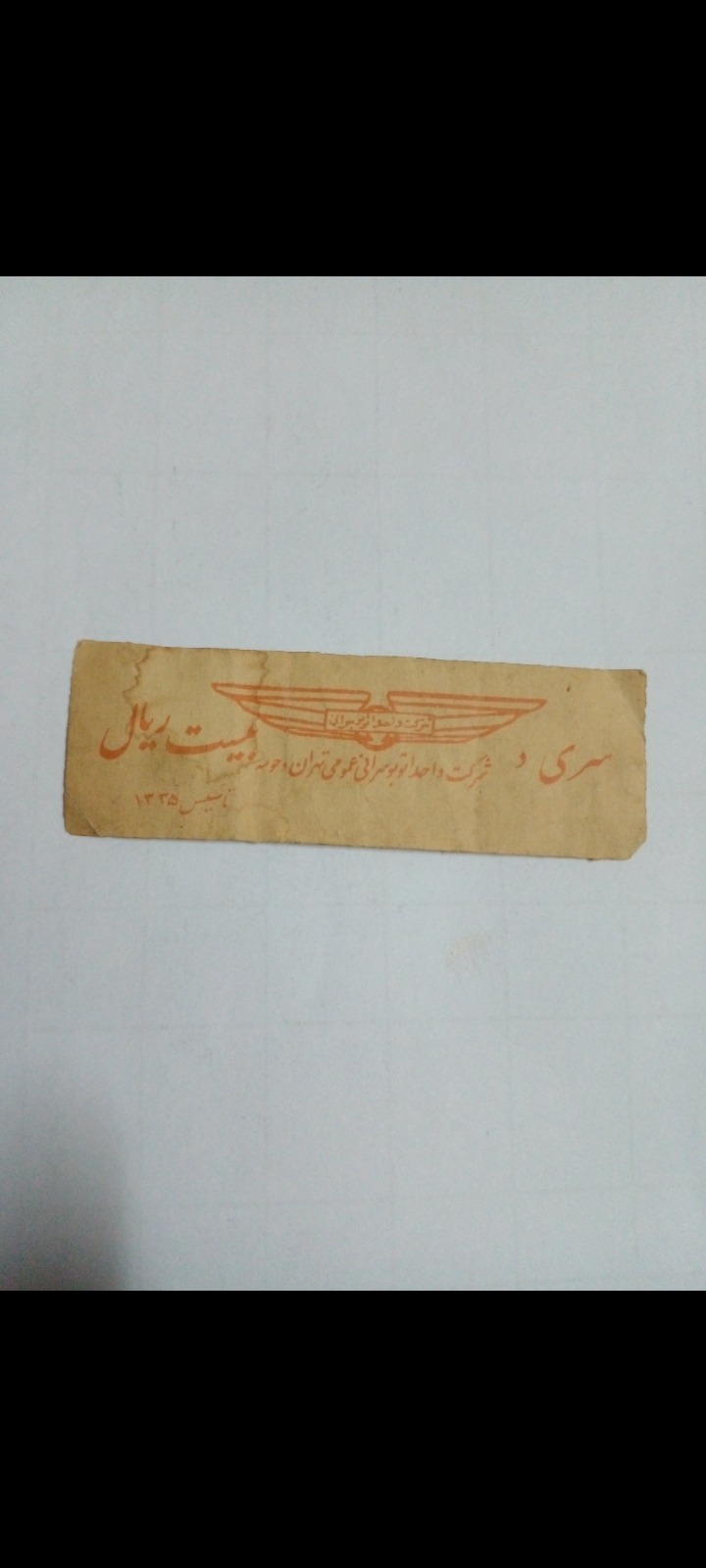 بلیط قدیمی 20 ریالی اتوبوس شرکت واحد