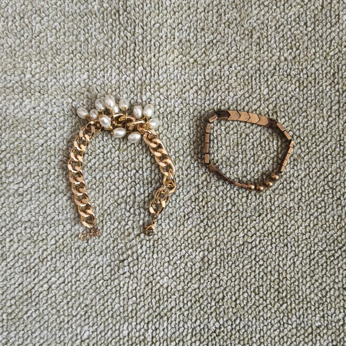 دستبند زنجیری استیل طرح مروارید (مرواریدهای دستبند از نوع صنعتی هست) و یک مورد طرح طلایی قیمت برای هر دو مدل با هم است.