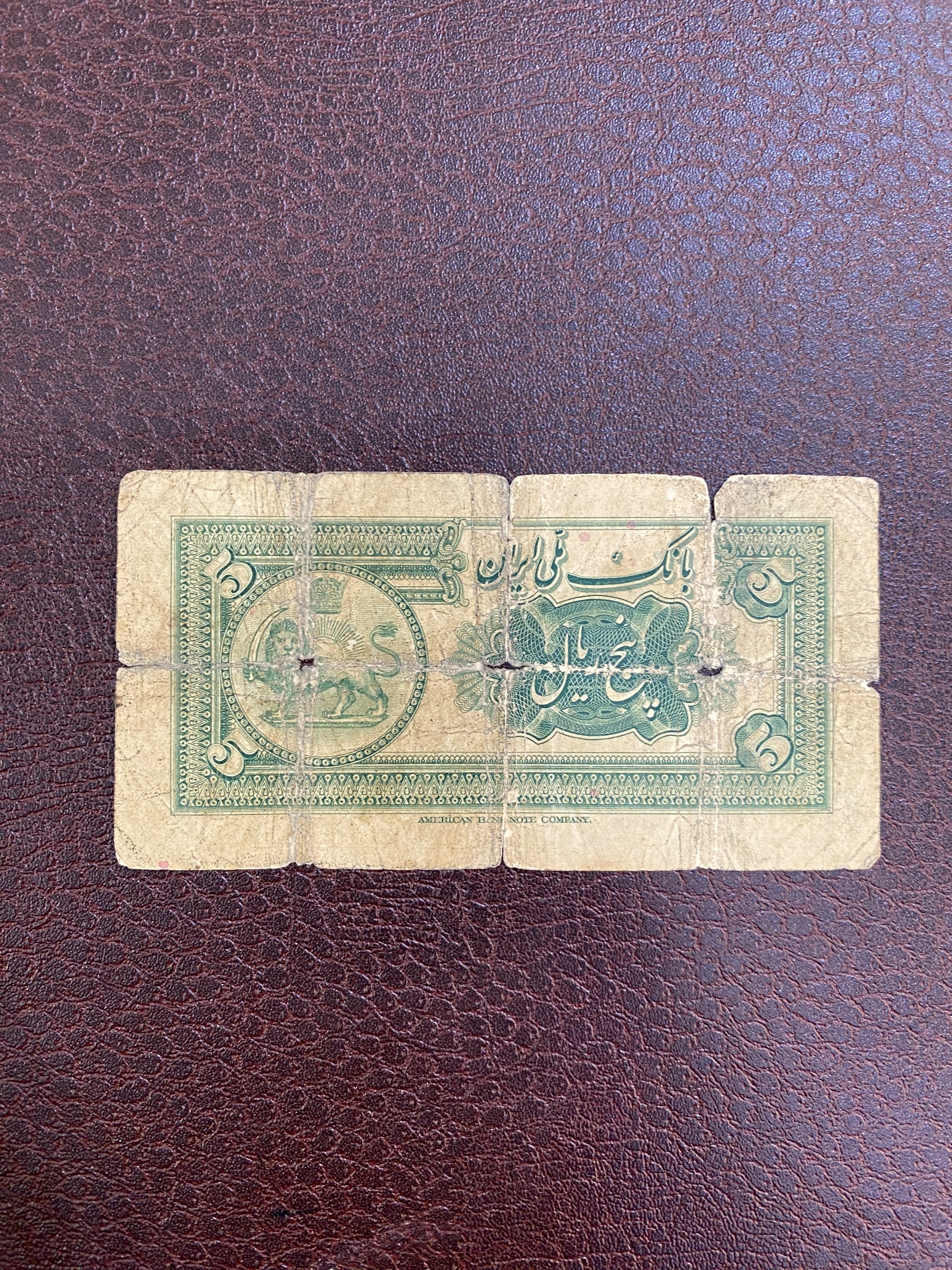اسکناس 5 ریال کلاهدار سری سوم رضا شاه