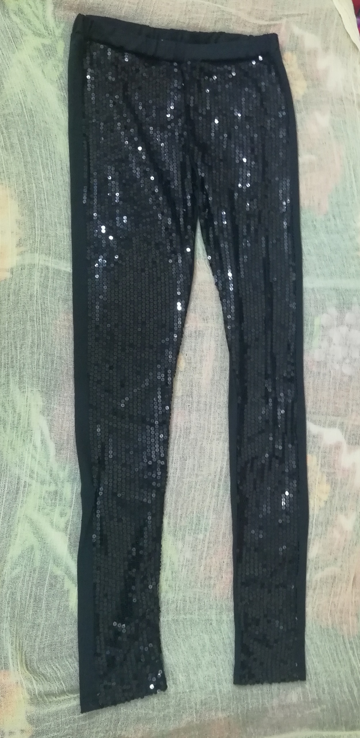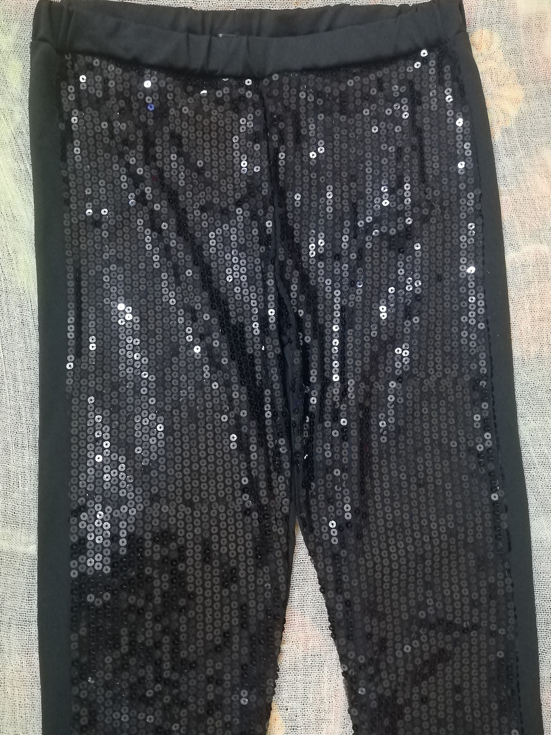 شلوار پولک کارشده مناسب نوجوان هستش پولک روی کاره وپشت شلوار ساده است که تو عکس گذاشتم پارچه شلوار حالت کشسانی داره یکی دوبار فقط استفاده شده قیمتی که گذاشتم فقط پول پولکاشه