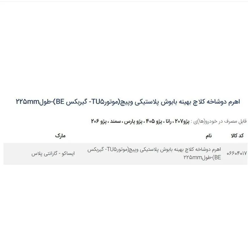 اهرم دوشاخه کلاچ بهینه پژو 206 TU5 ایساکو