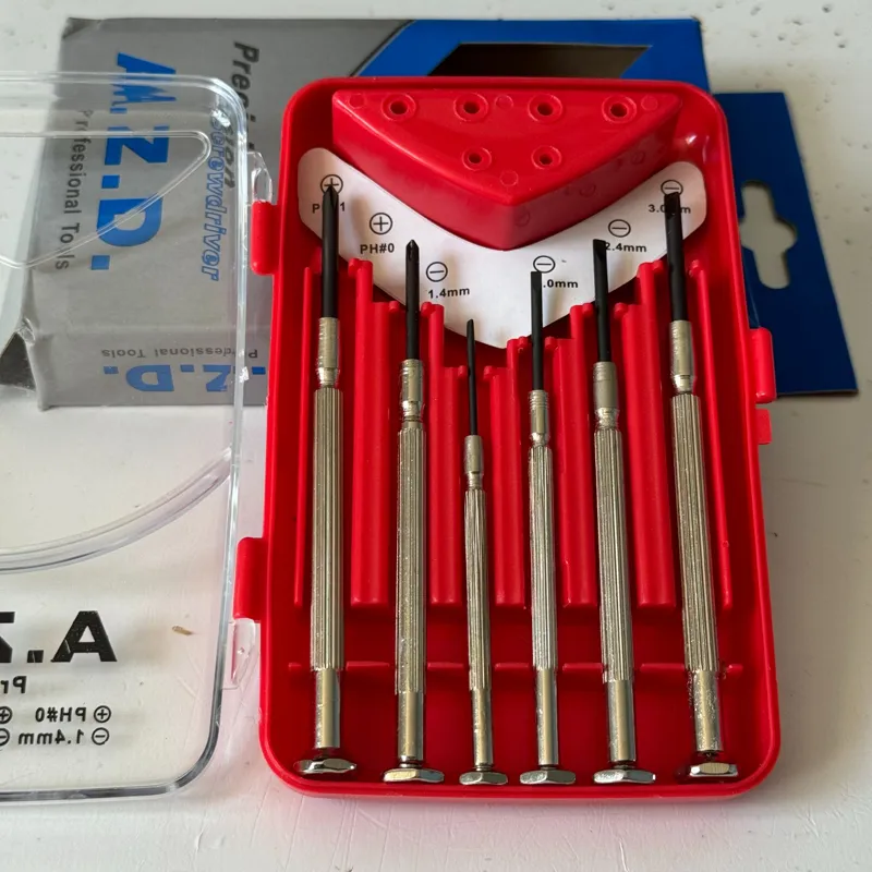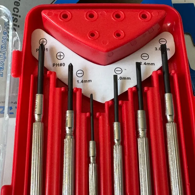 پیچ گوشتیهای ساعتی یکی از ابزارهای کاربردی محسوب میشوند که در انجام کارهای ظریف کاربرد دارد. این محصول دارای 6 پیچ گوشتی بوده که سایزی کوچک دارندبرای این محصول 2 پیچ گوشتی چهارسو در سایزهای PH0 و PH1 و 4 پیچ گوشتی دوسو در سایزهای 3 ,1.4، 2 و 2.4 میلیمتر درنظر گرفته است. دستهی این پیچ گوشتیها نیز مانند سری آنها فلزی بوده و استحکام بالایی دارند. این مجموعهی 6 عددی درون کاوری پلاستیکی با دری شفاف عرضه میشود.