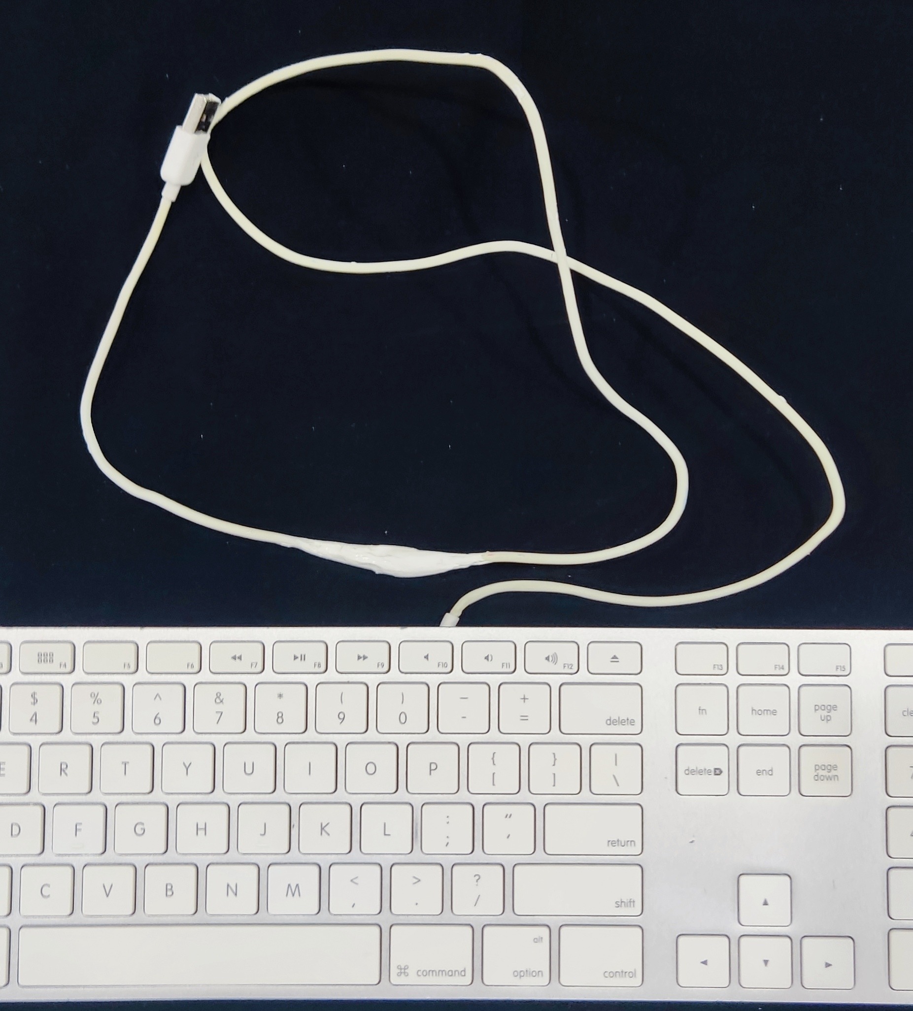 کیبورد از نظر ظاهری کاملا سالم هست، زمانی که به سیستم متصل میشود، Apple keyboard را شناسایی میکند (طبق عکس)