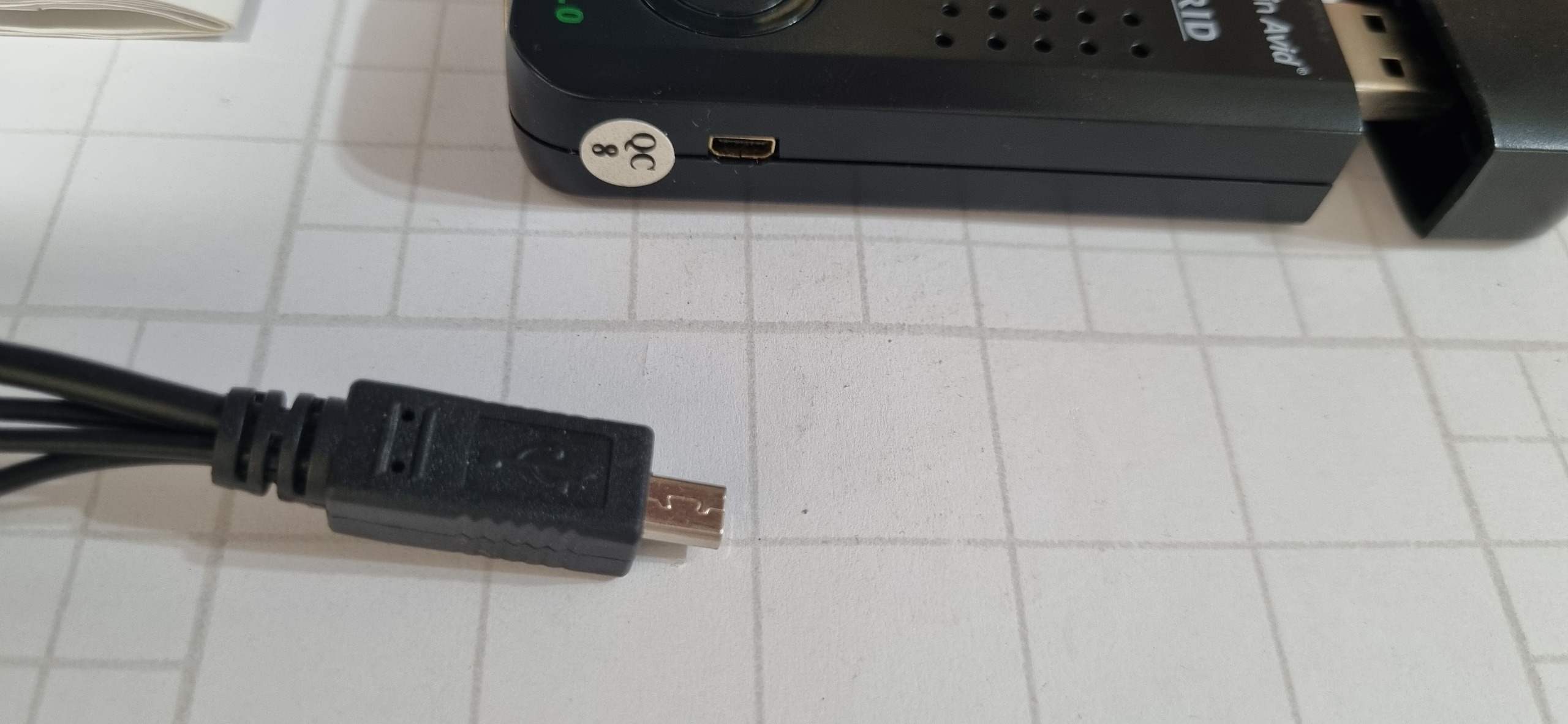 تیونر تلویزیون USB (Pin Avid Hybrid): دستگاه اصلی به شکل یک فلش مموری بزرگ که به پورت USB کامپیوتر متصل میشود.