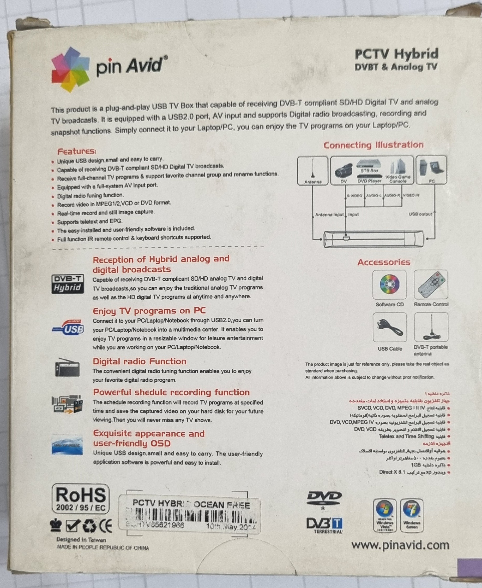 کارت تیونر تلویزیون USB هیبریدی Pin Avid PCTV