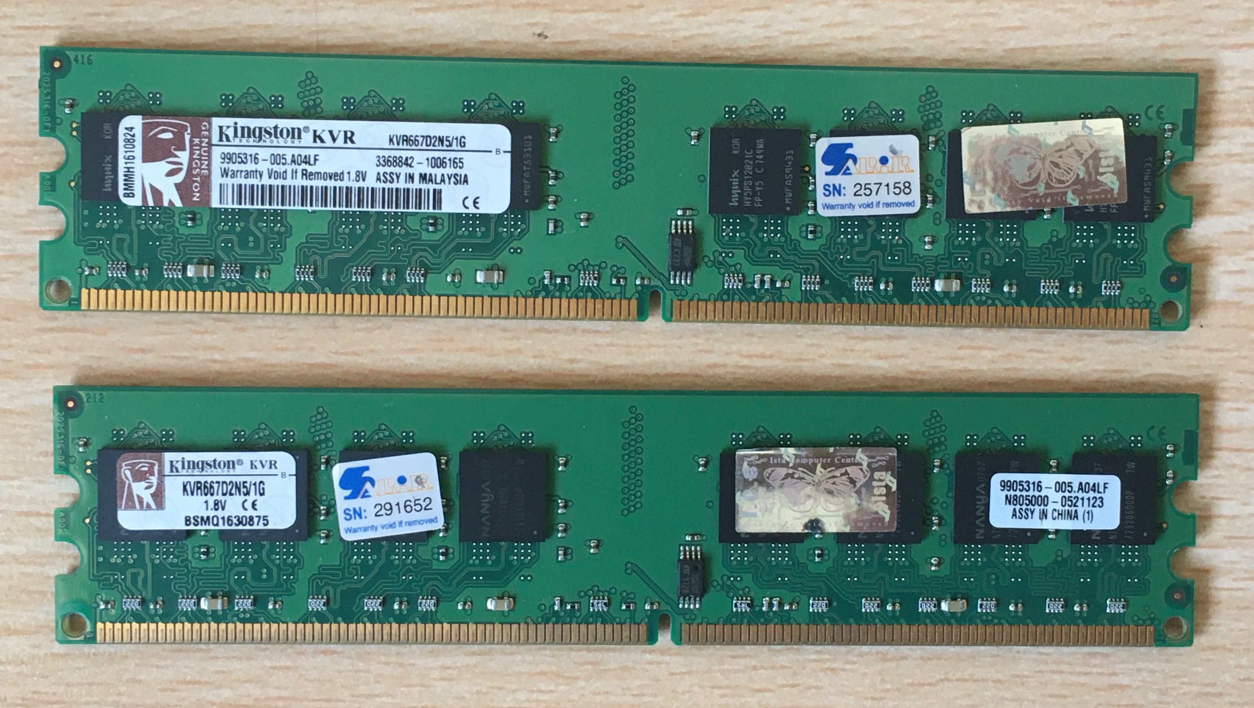 جفت رم DDR2 باس 667، یک گیگ کینگستون KVR667D2N5/1G