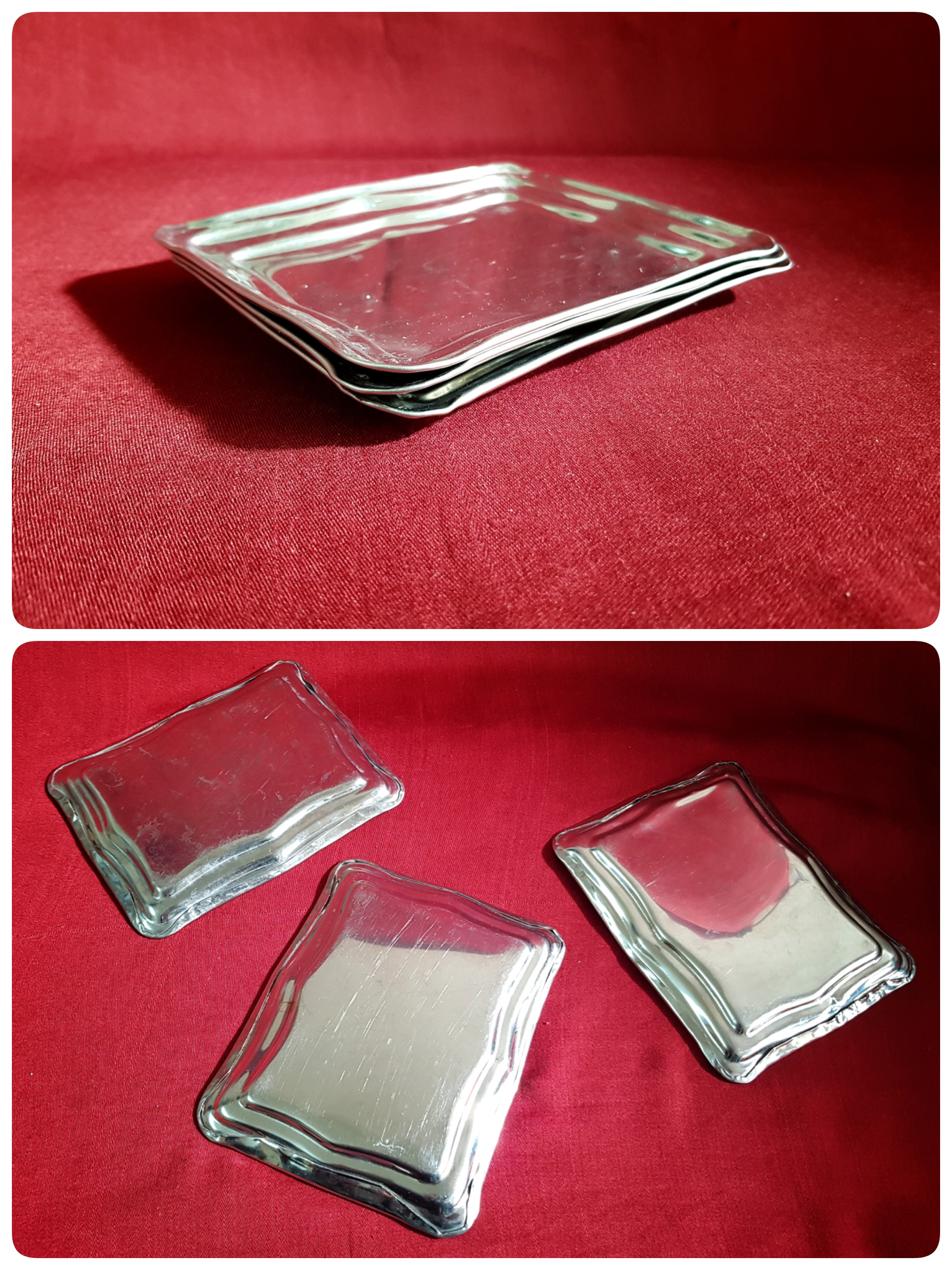 طبق تصاویر 3 عدد سینی قند پهلو یا زیر استکانی استیل