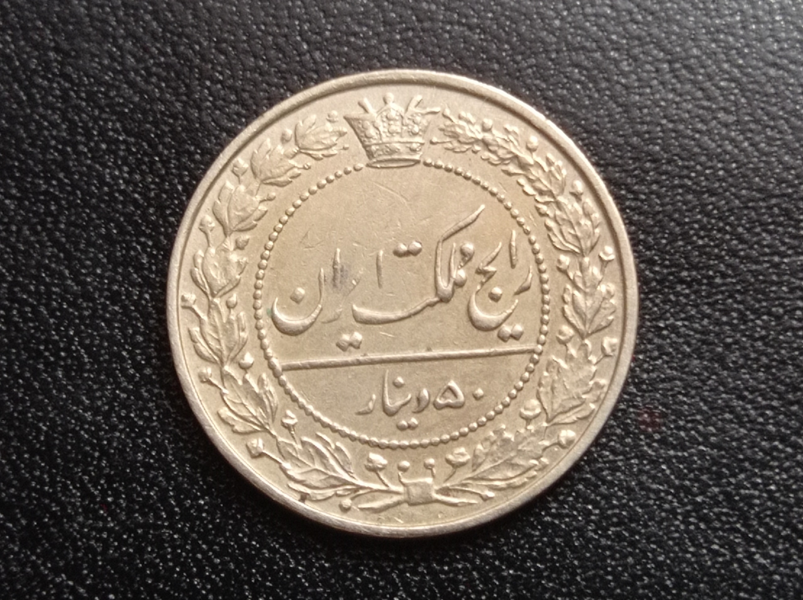 سکه پنجاه دینار نیکل 1332 احمد شاه قاجار