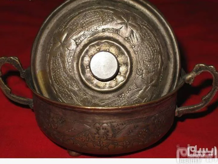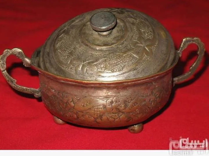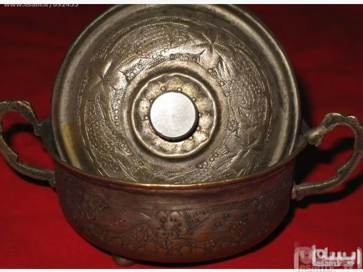 قندون برنجی قدیمی قلمزنی دستساز قاجاری فوق نایاب