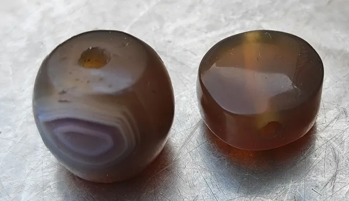 دو عدد مهره جزع کهنه آبدار و بسیار زیبا