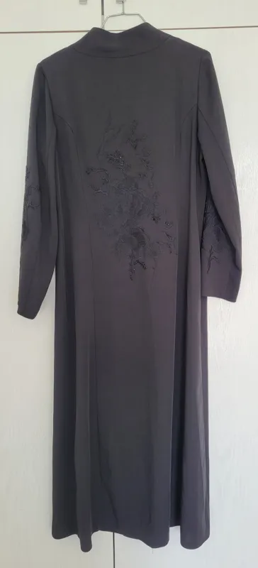 پشت لباس و روی هر دو آستین گلدوزی طرح گل رز دارد و کمی منجوق کاری شده