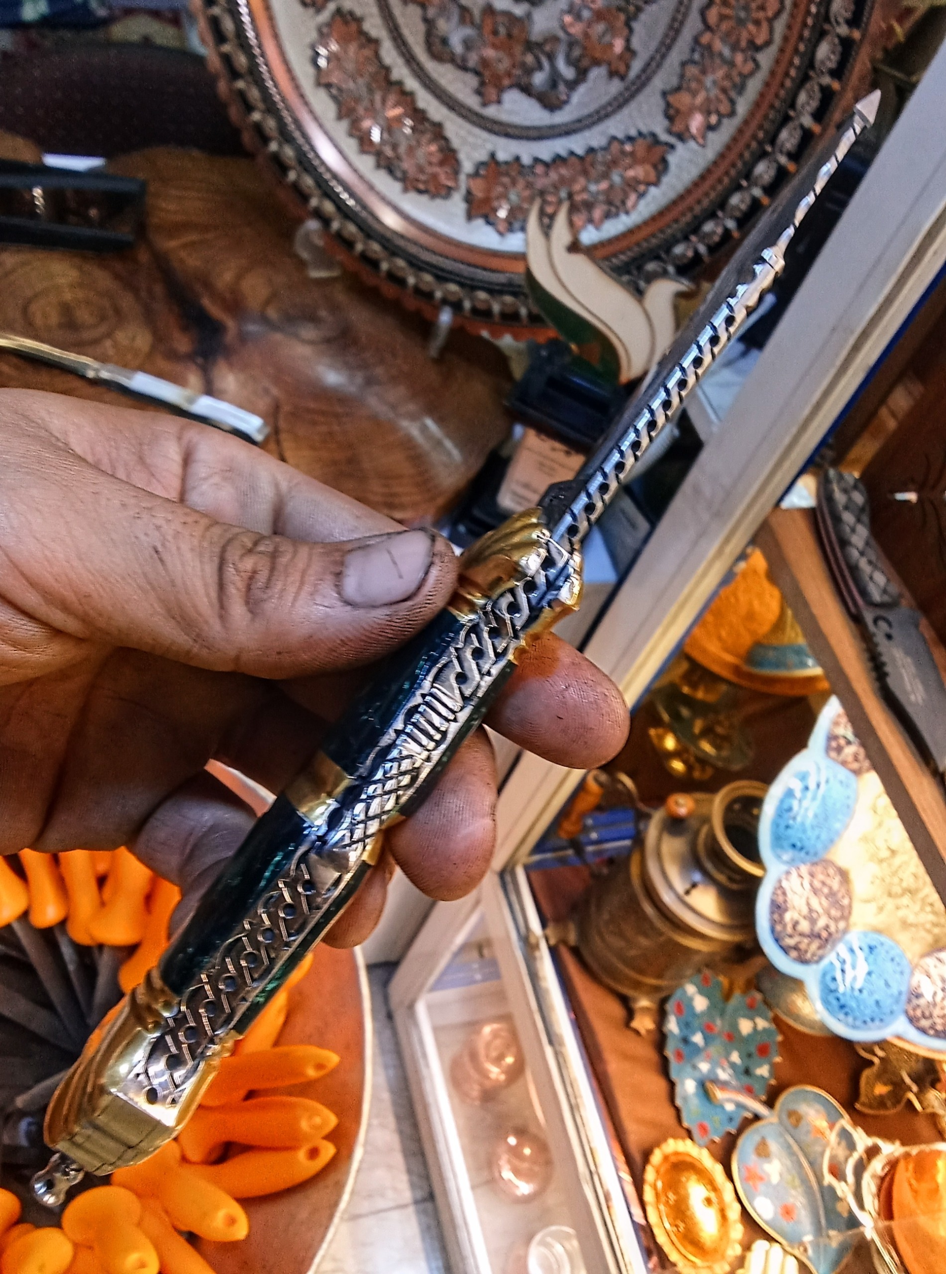 چاقو کلکسیونی وسفارشی دسته کهربا تیغه دمشقی اصل آلمانی مدل تاج دوطرف دسته برنجی کاری سفارشی ونک وکمیاب وفاخر ونمایشی باب کلکسیون داران عزیز ضامن روان ومحکم پشت تیغه جودان کاری سوهان کاری شده پرکار وریزه کاری انجام شده و صفرتاصد کاردست سایز دخالت بازچاقو 21سانت وبدون درز ولقی کیپ وروان همه چی تموم کاربردی وکلکسیونی هر سوالی باشه درخدمتم وسفارش انواع عتیقهجات وبدلیجات وسفارش انواع چاقو کلکسیونی وسفارشی وبازاری پذیرفته میشود