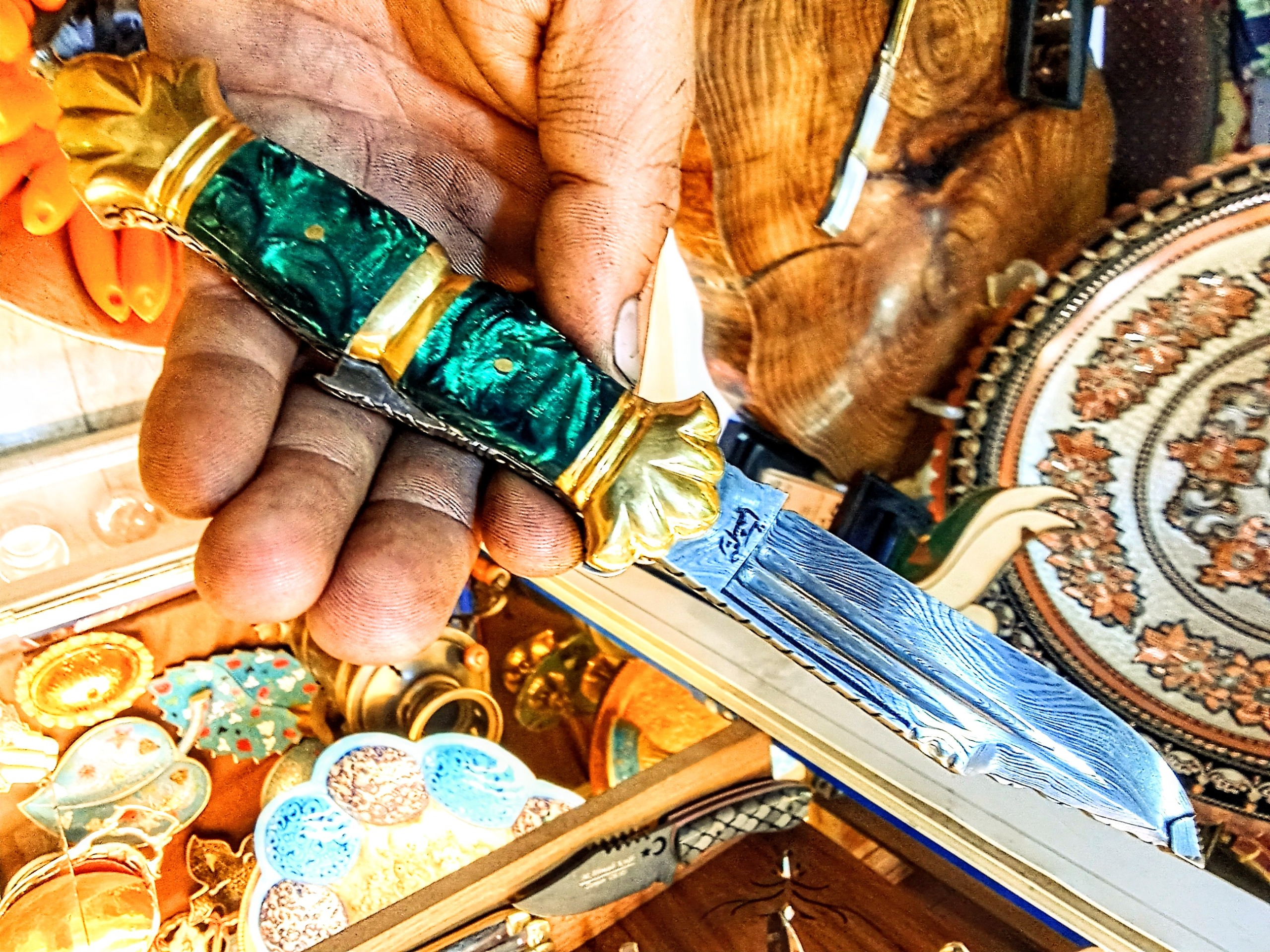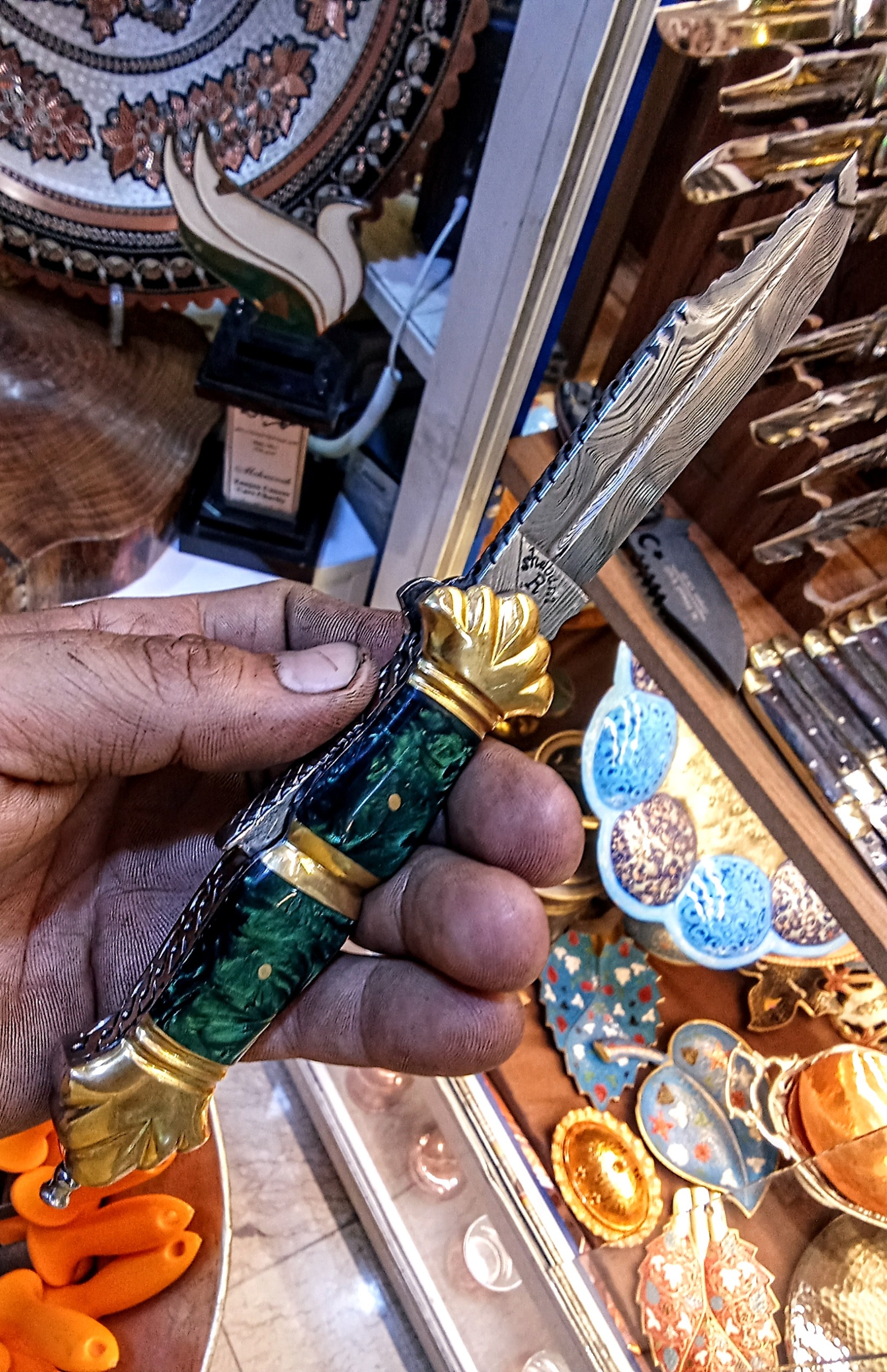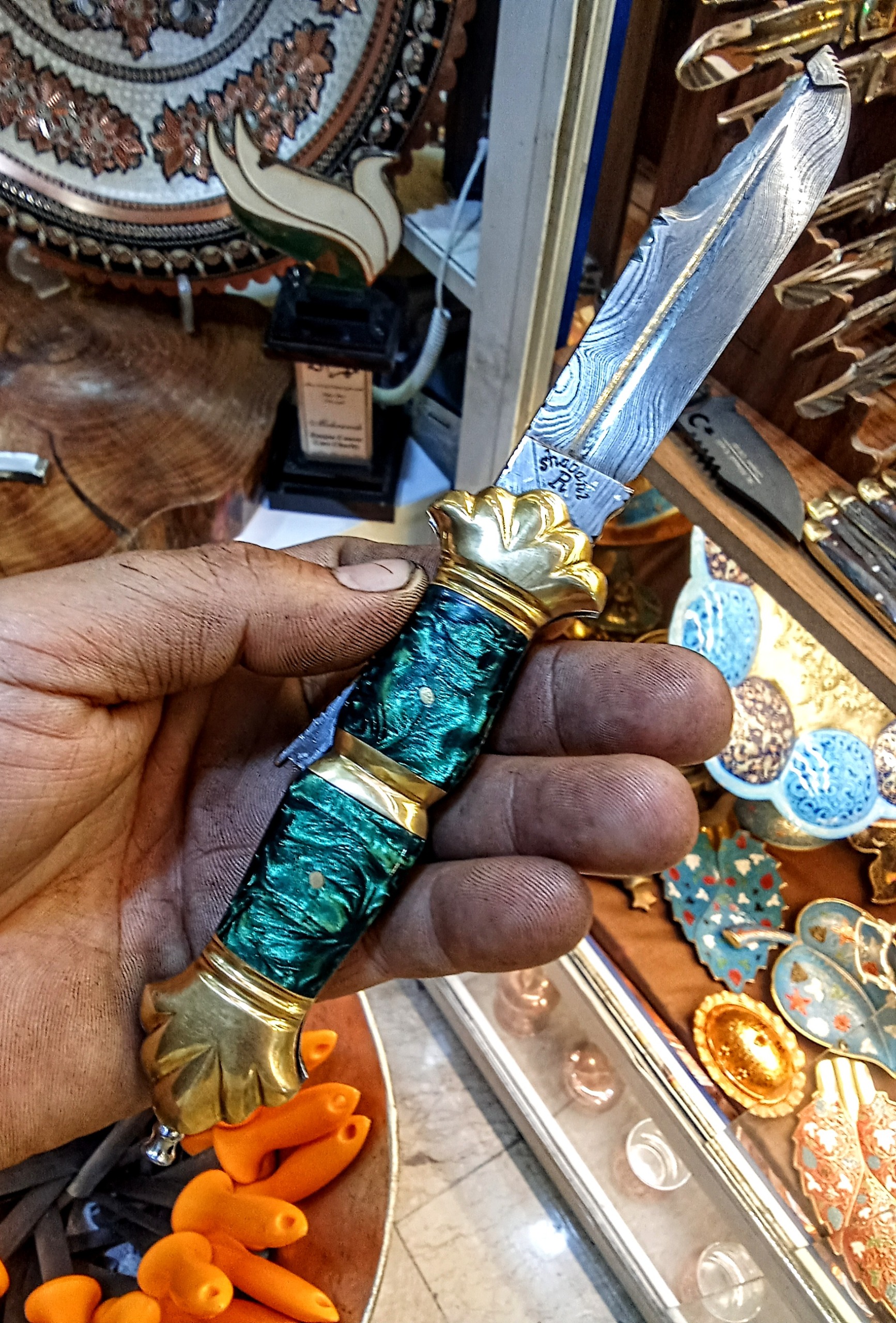 چاقوکلکسیون دمشقی دسته کهربامدل تاج استادشعبانی