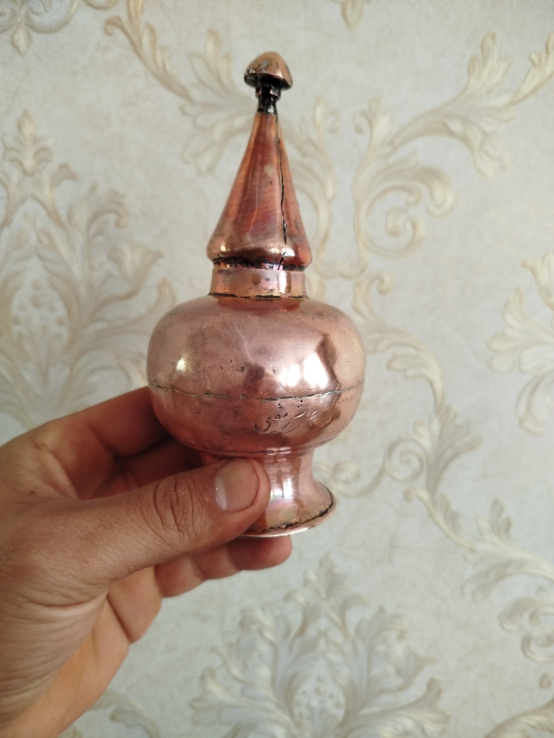 نمکدان مسی قاجاری صاحبه دار جوندار سالم