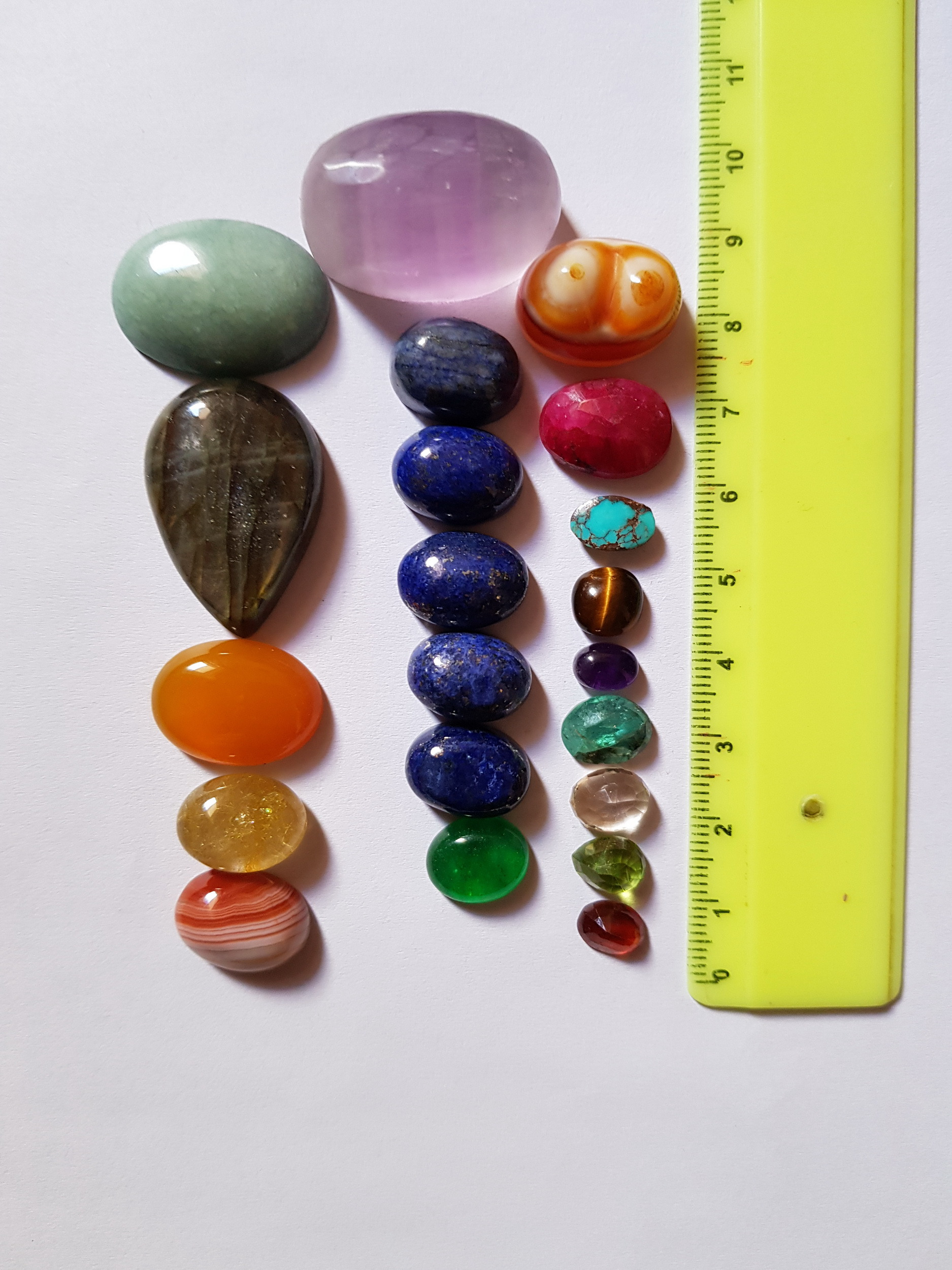 5 عدد لاجورد طلاکوب  /آونتورین سبز / لابرادوریت تراش اشکی / در مویی / سیترین / عقیق سلیمانی / باباقوری دو کوهان / فلورین / زمرد زامبیا / گارنت دانه اناری / زبرجد  / چشم ببر  / یاقوت هندوستان / فیروزه نیشابور / عقیق زرد / اماتیس پررنگ / یشم سبز