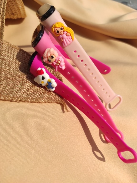 ساعت بندی هوشمند بچگانه یک ساعت فانتری و عروسکی با رنگبندی و طرح های متفاوت که دارای بند سیلیکونی و صفحه تماما لمسی است. بند این ساعت متناسب با دست کودک دلبند شما قابل