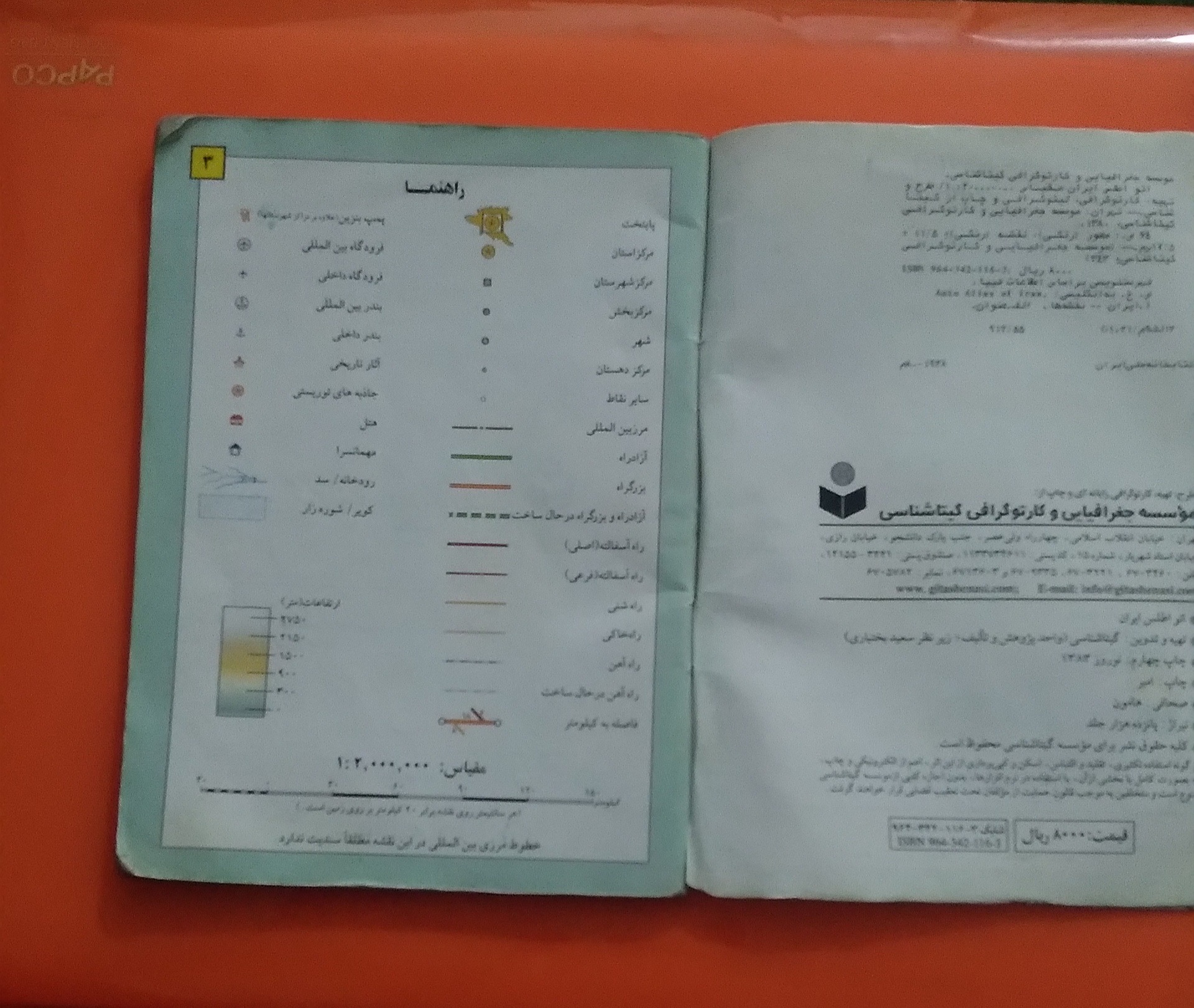 کتاب اتو اطلس راه های ایران(گیتاشناسی) جلد کتاب قدیمی و دارای پوسیدگی هست ولی صفحات کتاب کاملا سالم و نو هست طبق چیزی که تو عکس ها میبینید صفحات کتاب از جنس کتاب مقاوم عالی هستش