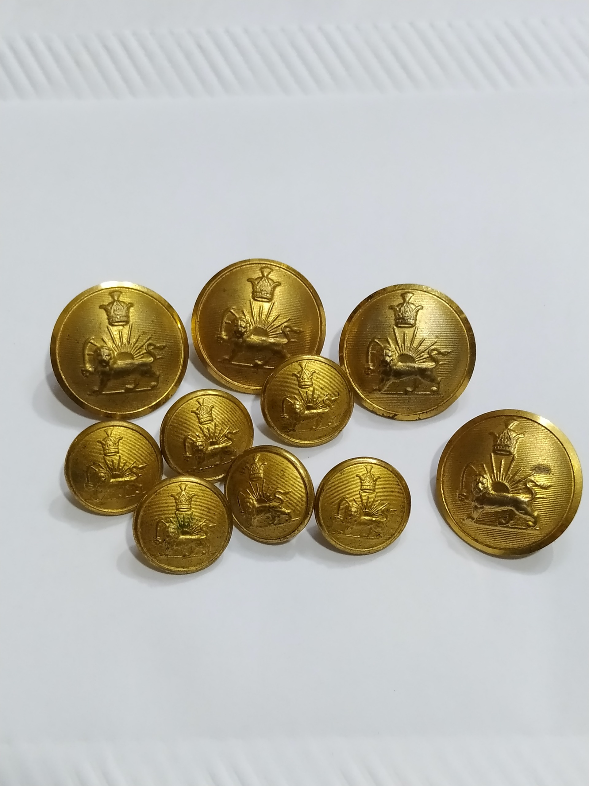 ده عدد دکمه پهلوی قدیمی شیرخورشید اصیل