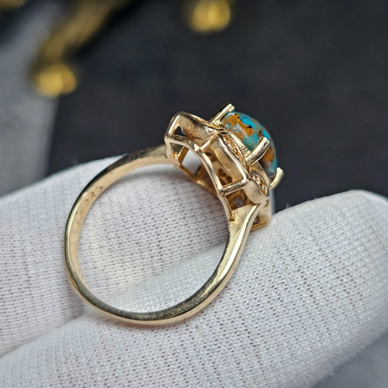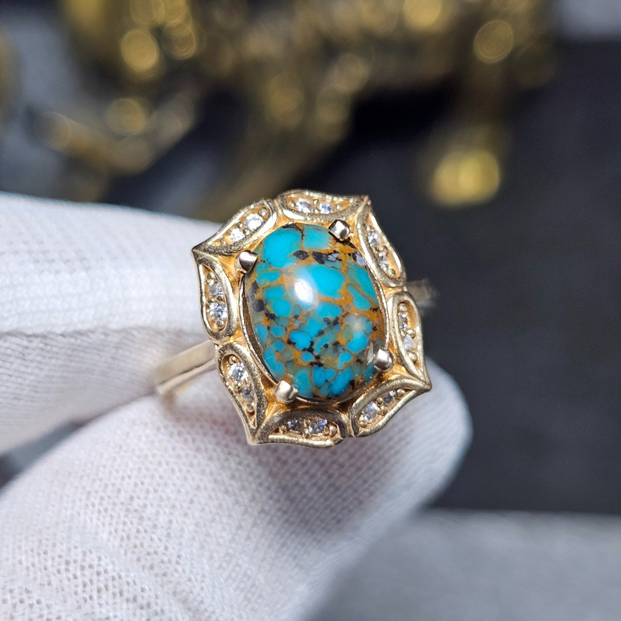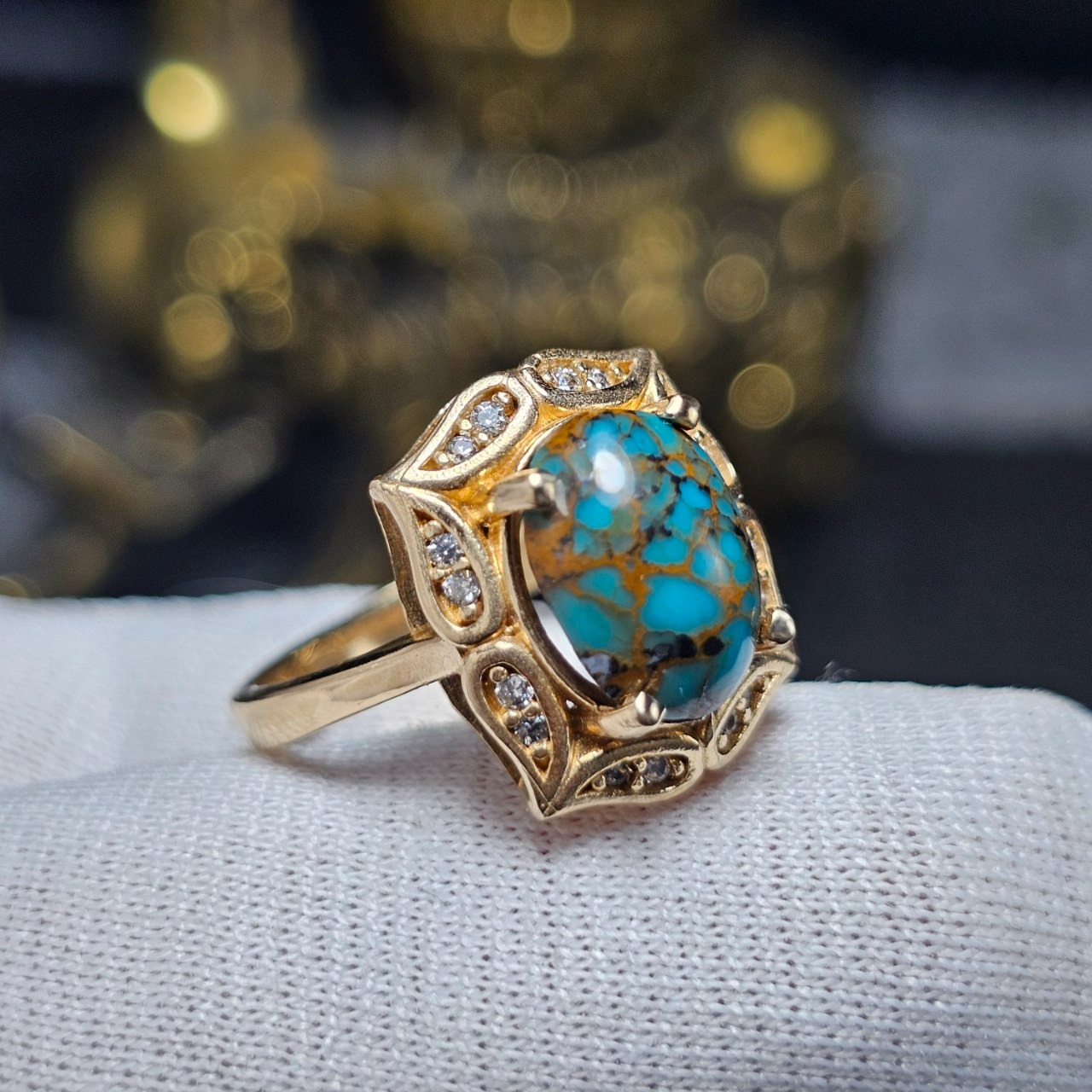 انگشتر طلا روس با سنگ فیروزه معدنی کد 36135