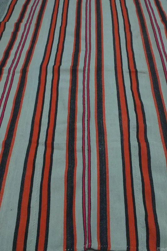 پلاس جاجیم دست بافت،جنس تماما از پشم خالص،بافت یکنواخت و از منطقه آذربایجان،ابعاد 184×280 سانتیمتر(5.15 متر مربع)،دارای شش تخته،بافته چندین سال قبل میباشد که به دلیل عدم استفاده سالم و نو مانده است.