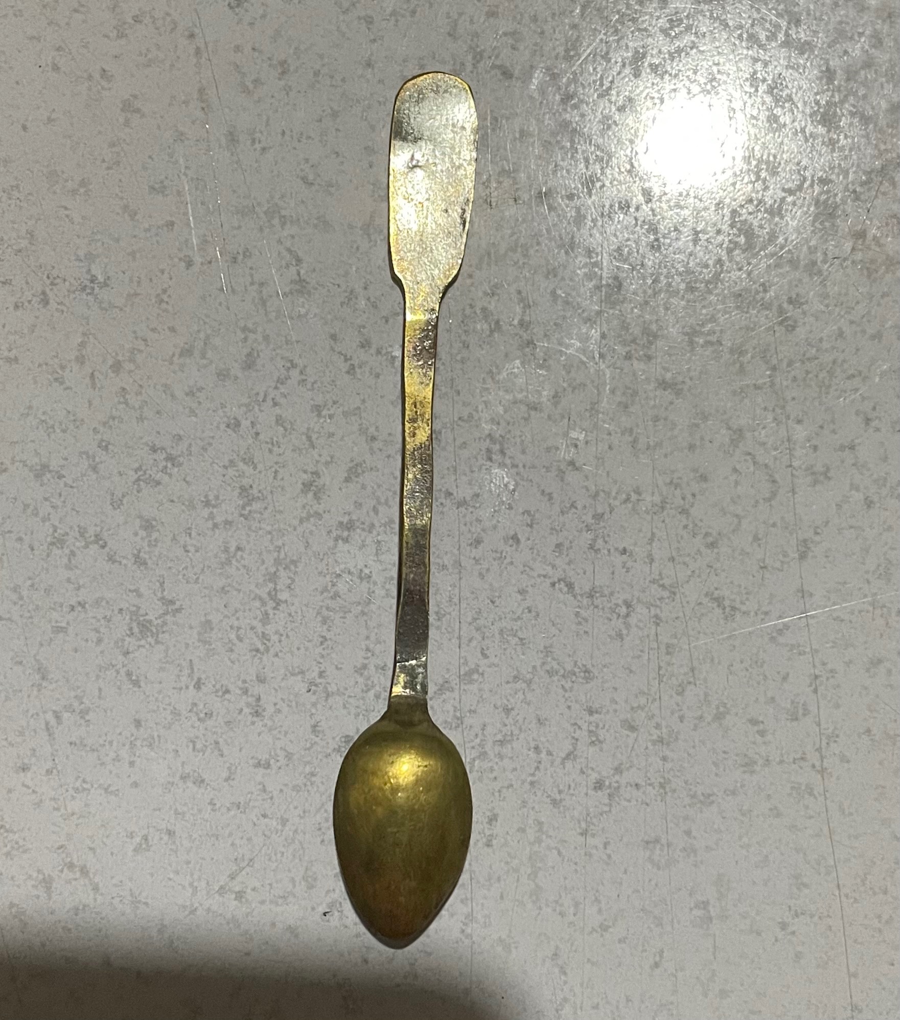 قاشق چای خوری برنجی قاجاری کیفیت مطابق تصویر دارای آرم شیر و خورشید