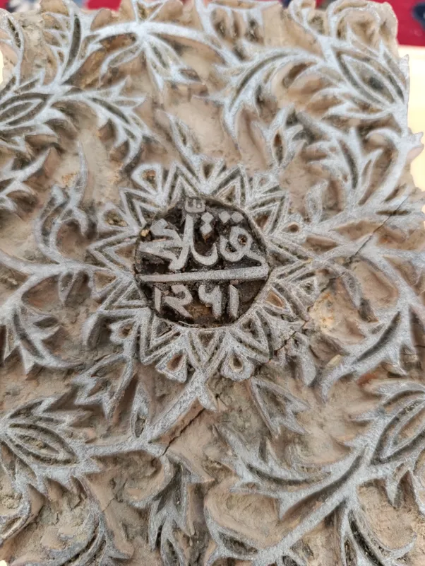 نقش روی پارچه رو قدیم با این وسیله میزدم جنس چوب به زیبایینقش گل کنار هم میزدم رو پارچه کارخانه محمد تقی یزد 1261هجری،