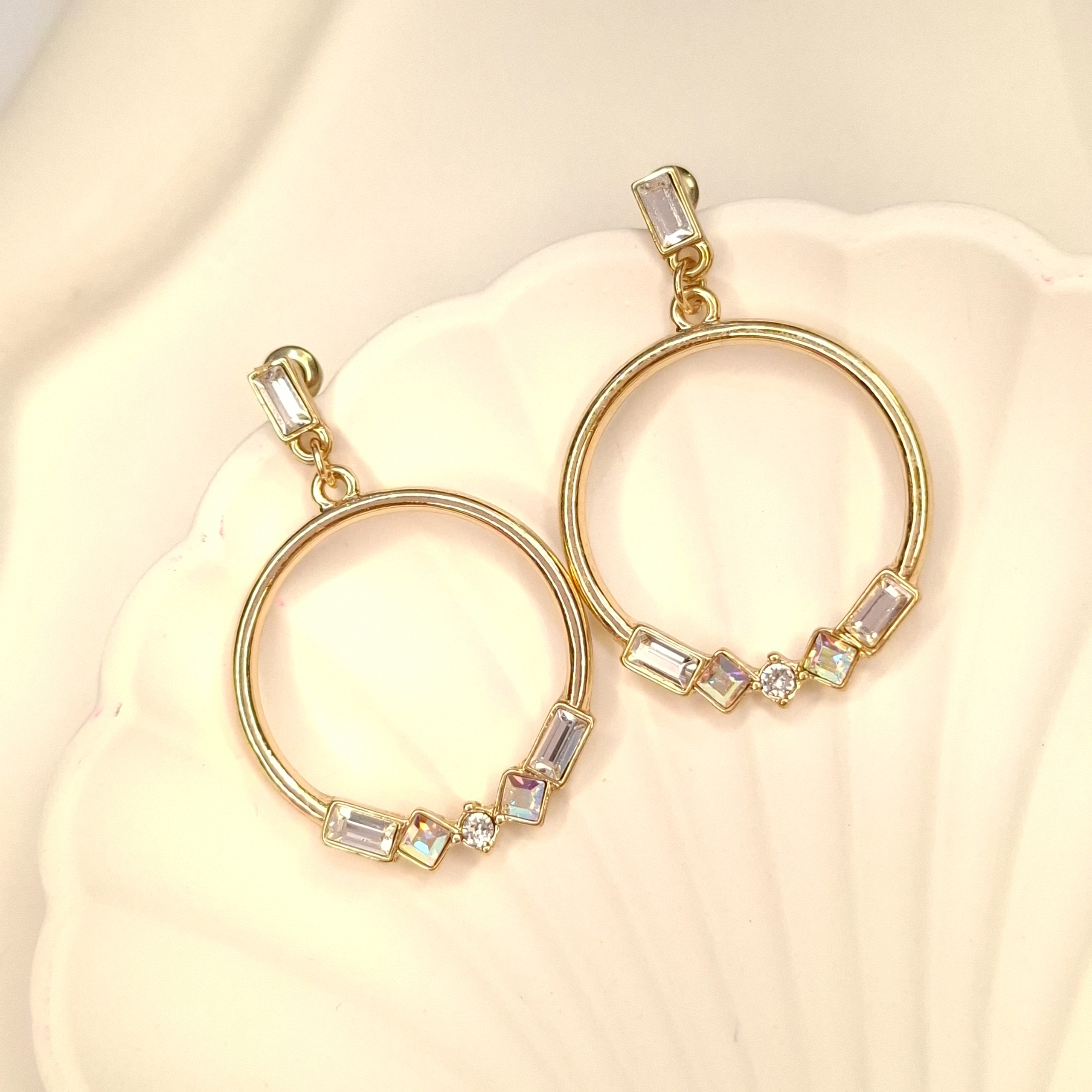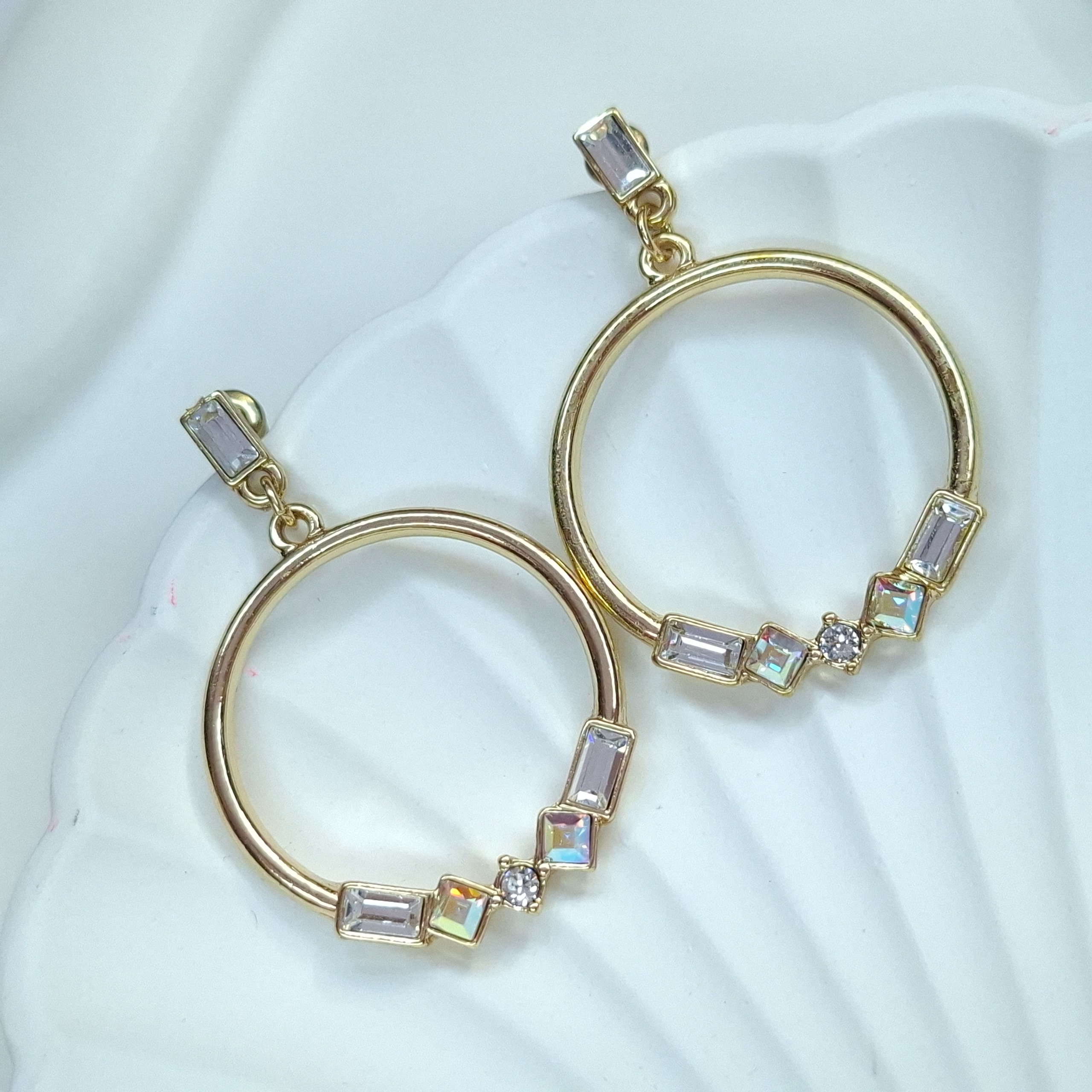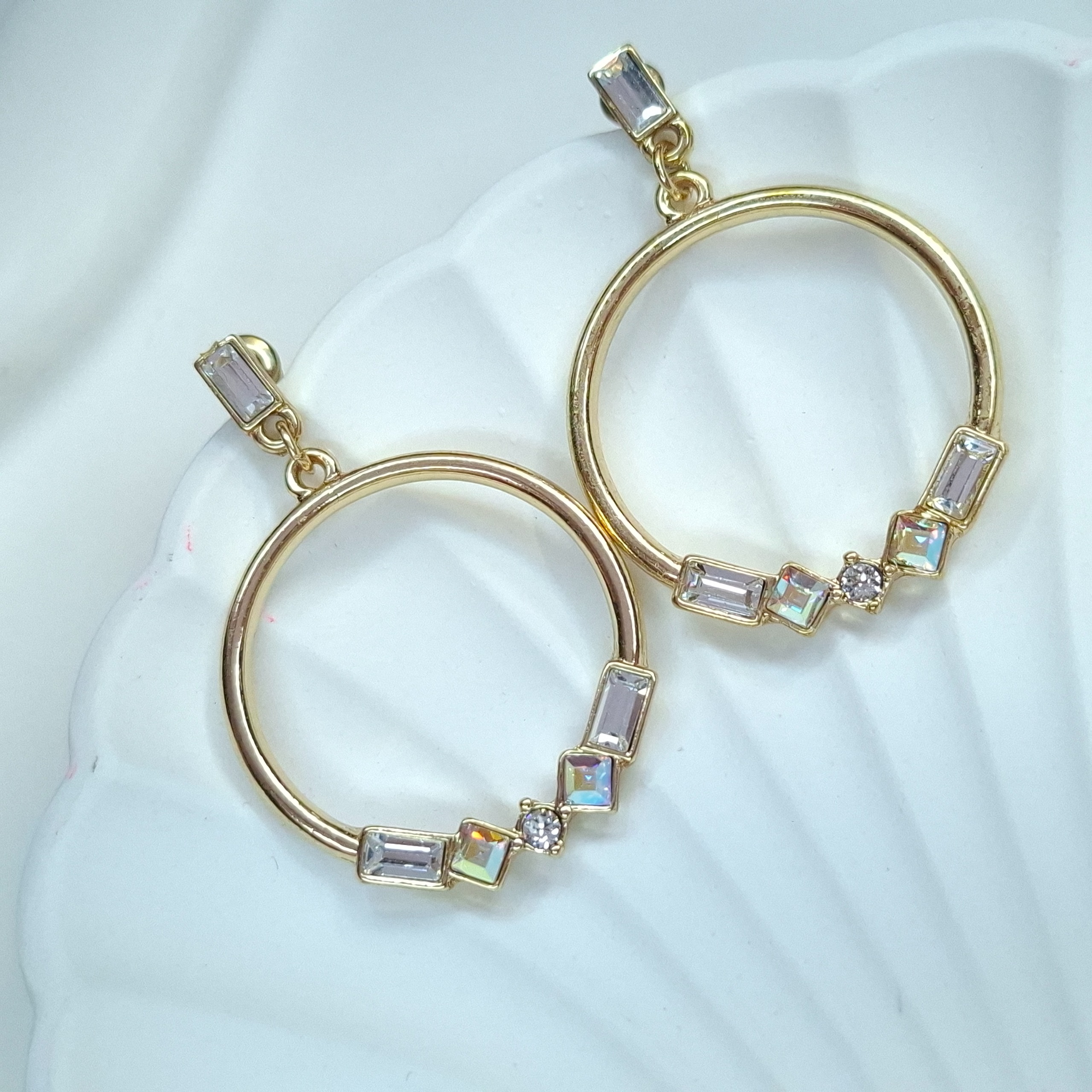 گوشواره مدل آویز حلقه ای نگین دار برند ای ام