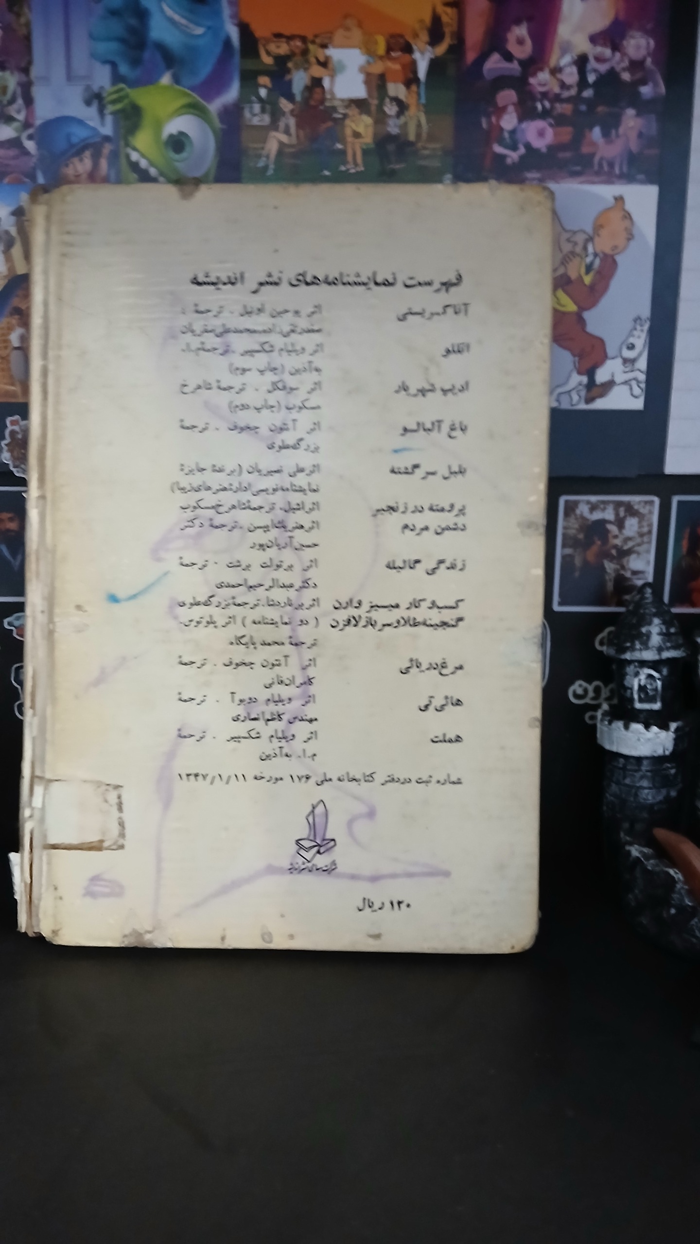 کتاب مکبث برای ویلیام شکسپیر کتاب دارای خط خوردگی و بعضی از صفحه های کتاب دارای پارگی میباشد ولی قیمت کتاب مناسب میباشد برای دکور مناسب میباشد قیمت 200 هزار تومان