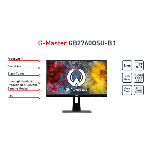 - چرا برای بازی؟: مانیتورهای G-MASTER باید تغییر دهندگان بازی واقعی باشند که به گیمرهای هاردکور واقعی مزیت رقابتی لازم برای تصمیم گیری در ثانیه را می دهند. گرافیک صاف و بدون لرزش در طول بازیهای سریع با استفاده از پنلهای با کیفیت بالا با زمان پاسخ تاولآمیز تضمین میشود که انتقال روان و دقیق بین تصاویر را تضمین میکند. G-MASTER مجهز به مجموعه گسترده ای از ورودی ها و اتصال هدفون است. هر مانیتور امکان دسترسی به حالت های بازی از پیش تعریف شده و سفارشی را فراهم می کند تا به سرعت تنظیمات را مطابق با ترجیحات خود تنظیم کنید. ترکیب FreeSync، Black Tuner و حداکثر 144 هرتز باعث می شود که بتوانید خود را در بالای زنجیره غذایی جامعه گیمرها قرار دهید!