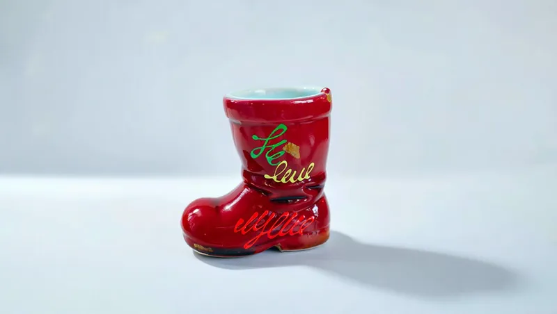 جا مدادی رو میزی شکل کفش سفالی لعابدار به ارتفاع 10 سانت.